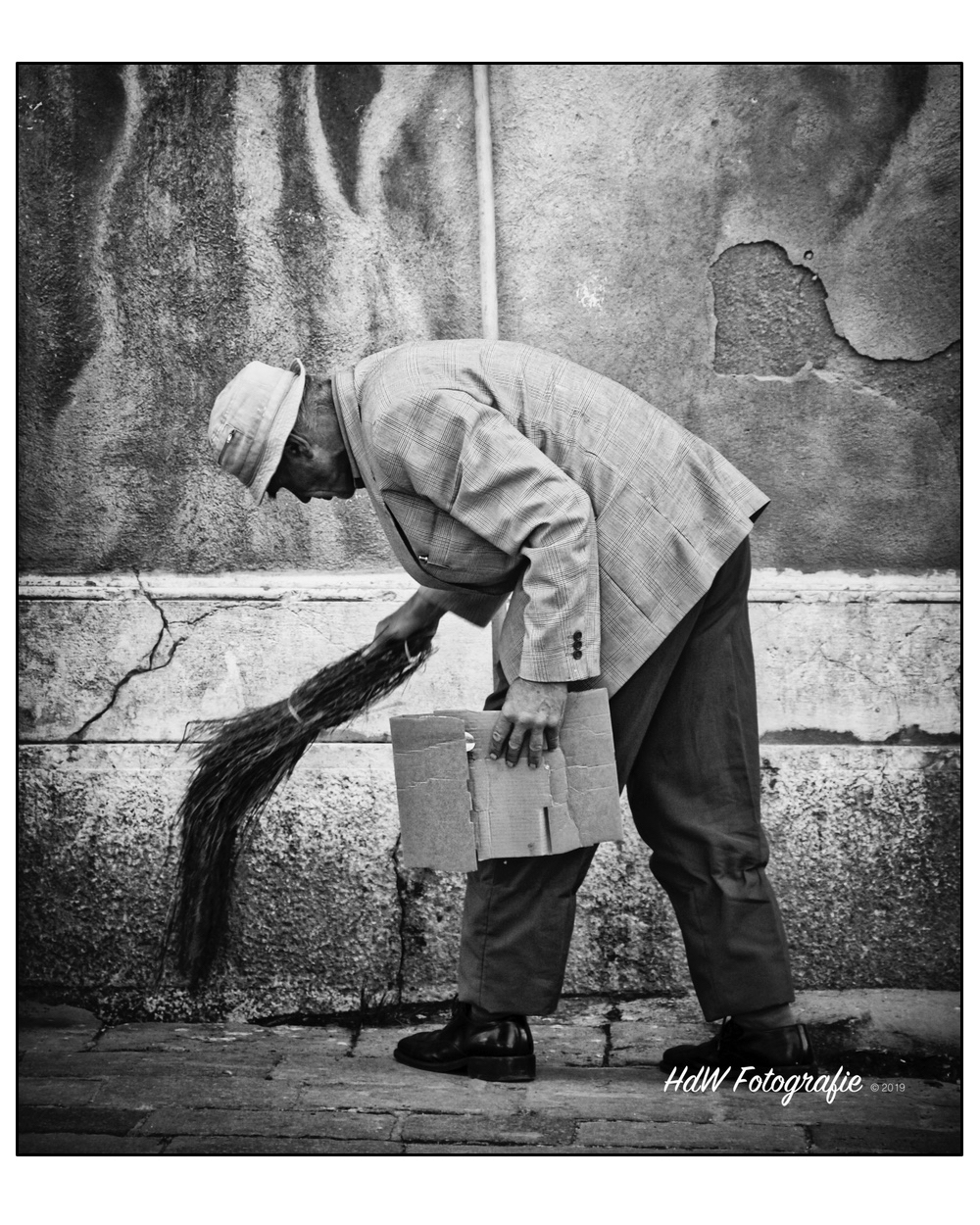 An old man cleaning the streets he's living on....