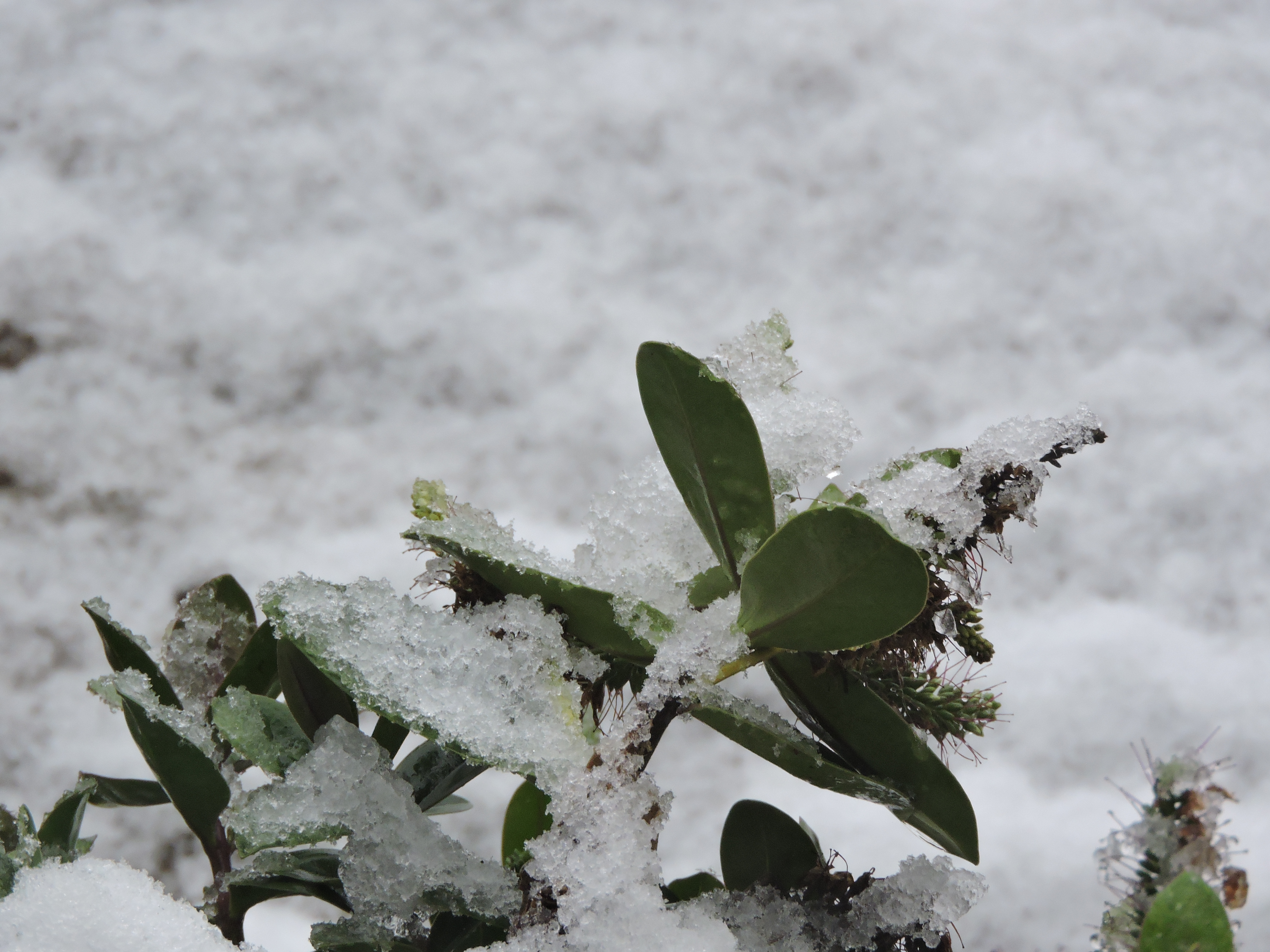 Close-up: sneeuw op vegetatie