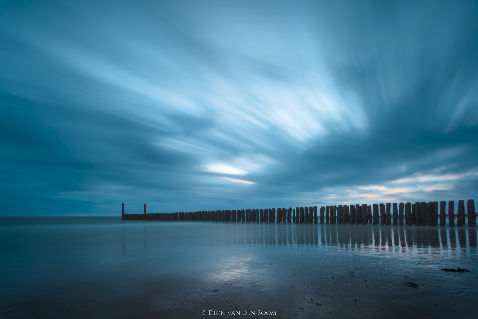 Long exposure tijdens een bewolkte zonsondergang op het strand bij Koudekerke.
