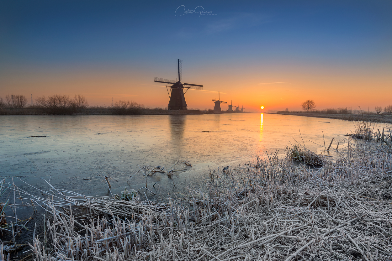 Cold sunrise in Kinderdijk