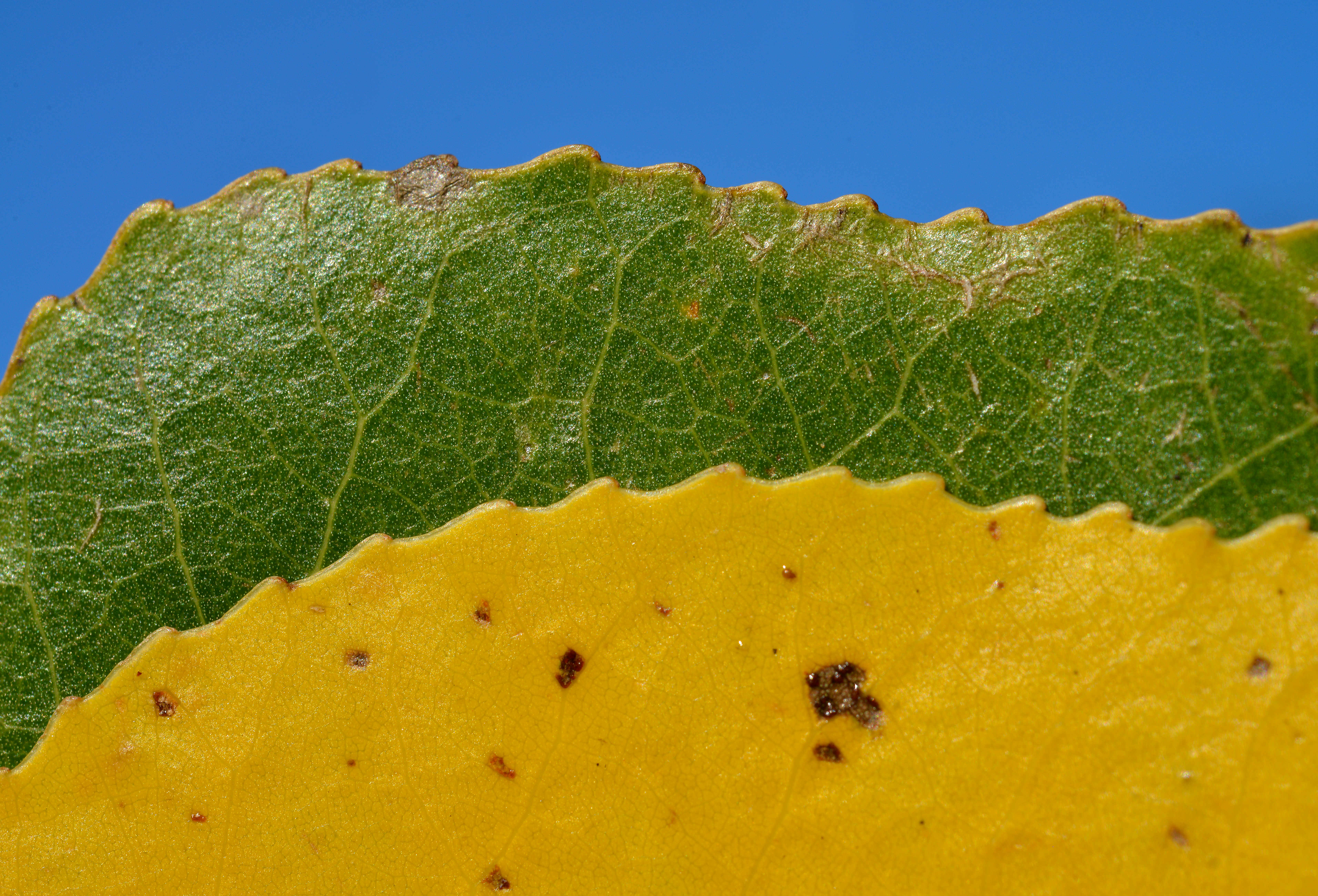 Blaadjes in geel, groen en een blauwe lucht als achtergrond :)