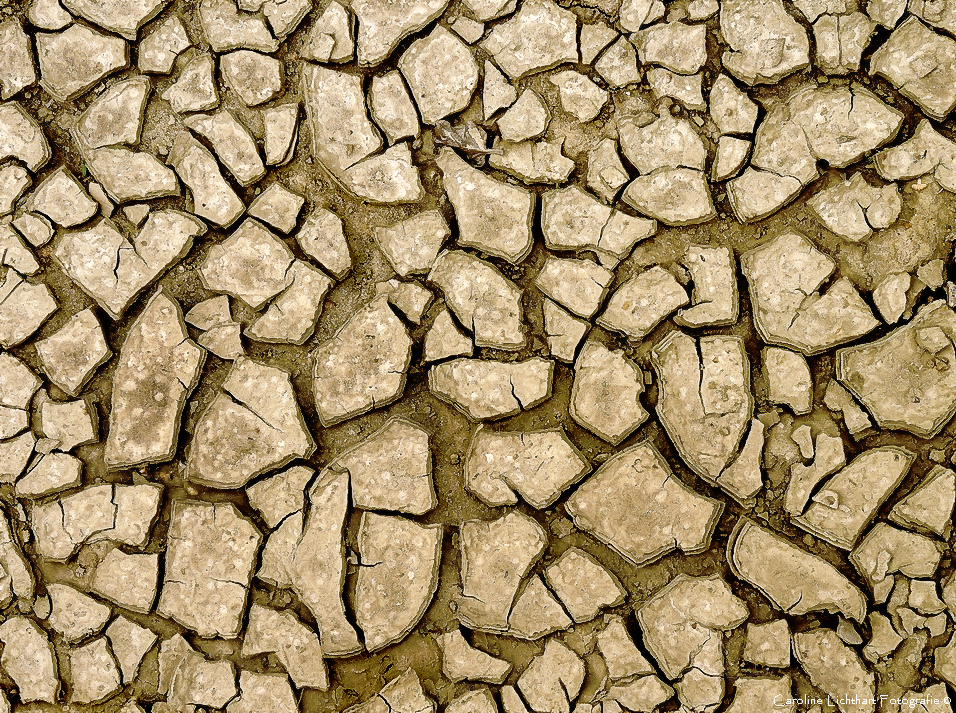 Door tijdelijke droogte gebarsten leemgrond.