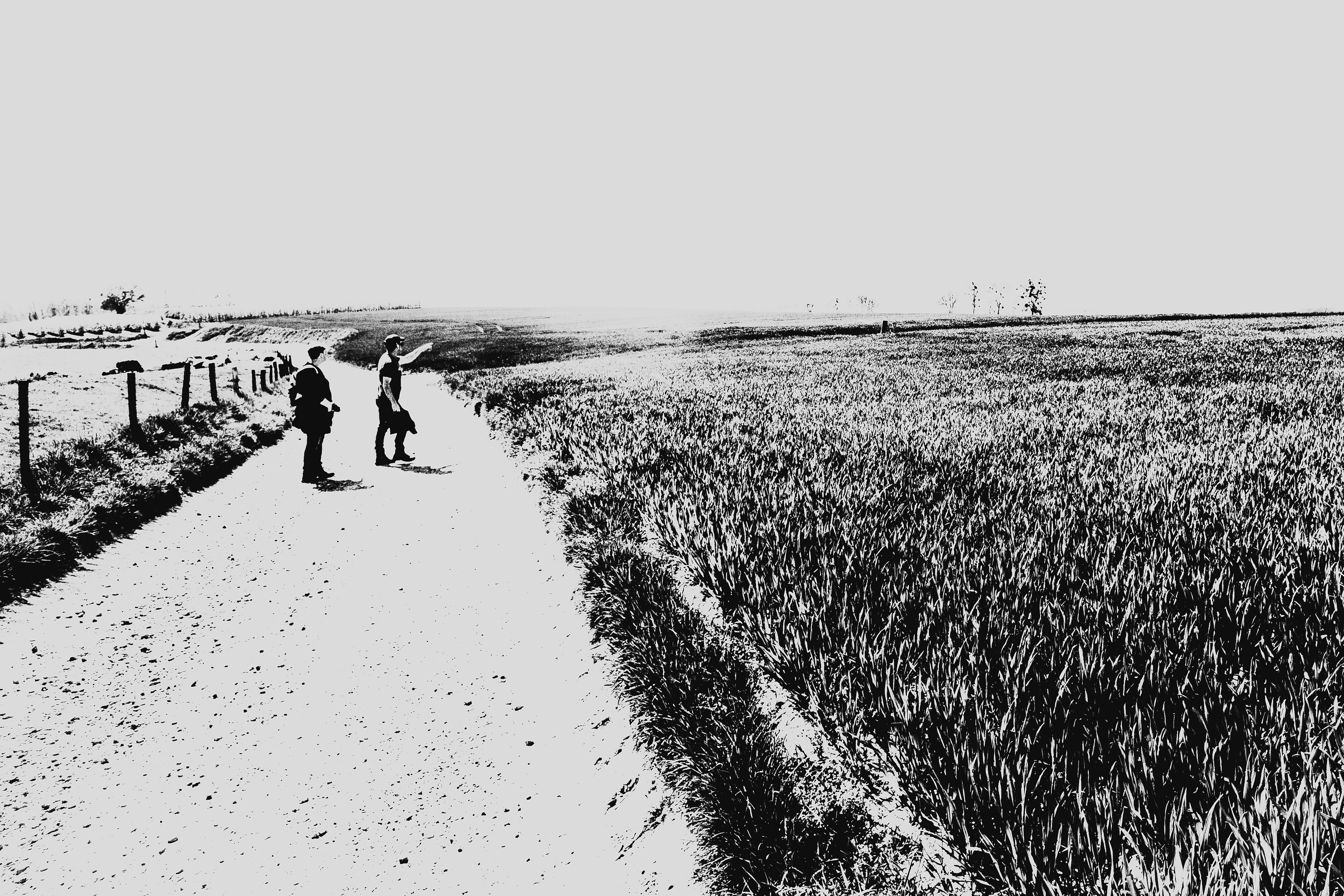 Wandelaars in het Zuid-Limburgse heuvelland: oriënteren zij zich op de te volgen route of is er 'iets bezienswaardigs' gesignaleerd???