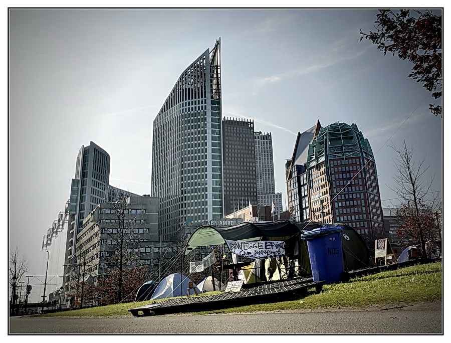 Het kleine kampje van occupy voor de reuzen van het kapitalisme !