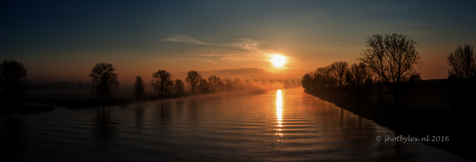 De Maas bij een wat mistige zonsopkomst.