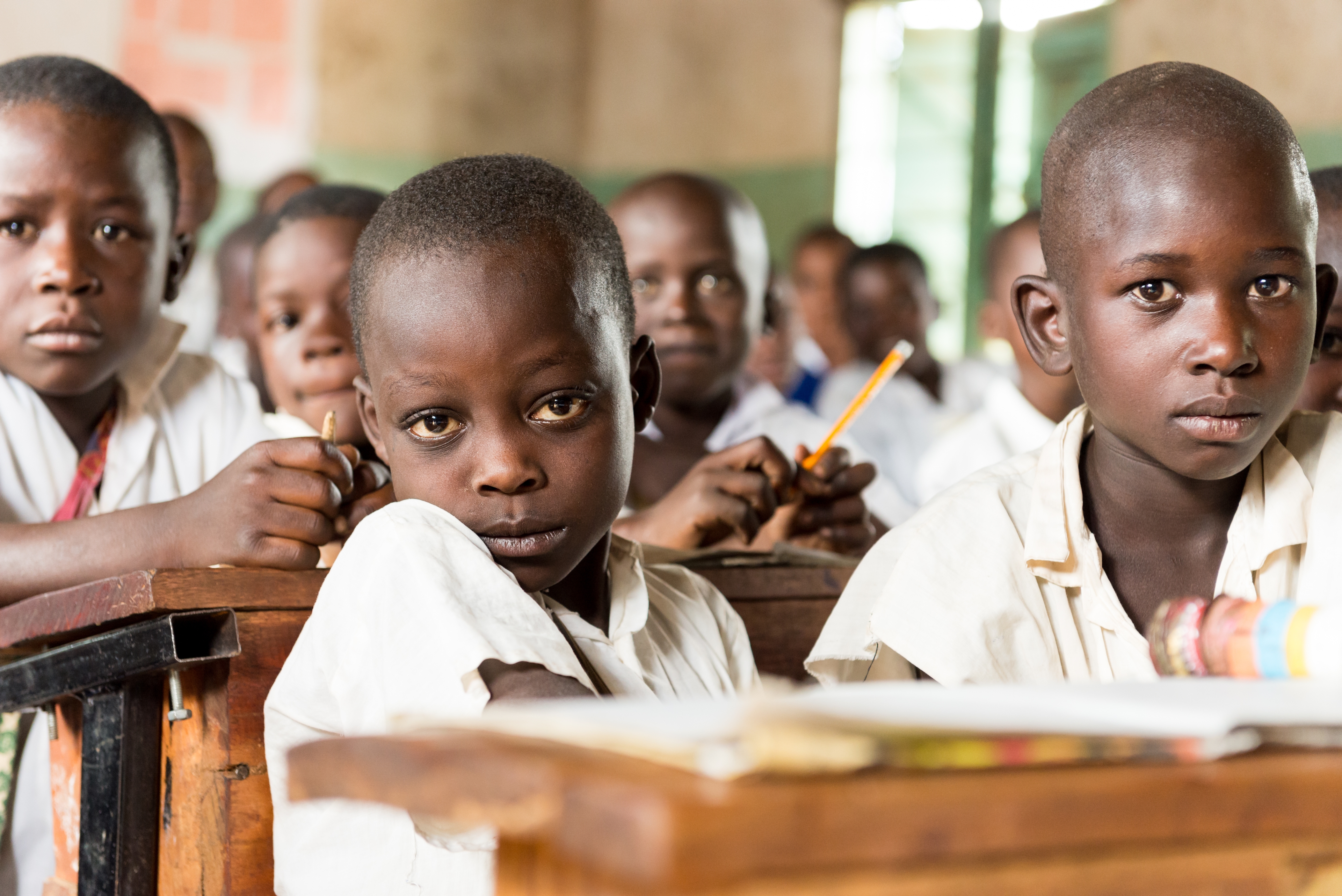 Ongeveer 125 jonge leerlingen per klas op de basisschool in Marambeka, Tanzania. En één leraar met een stok om ze in bedwang te houden.