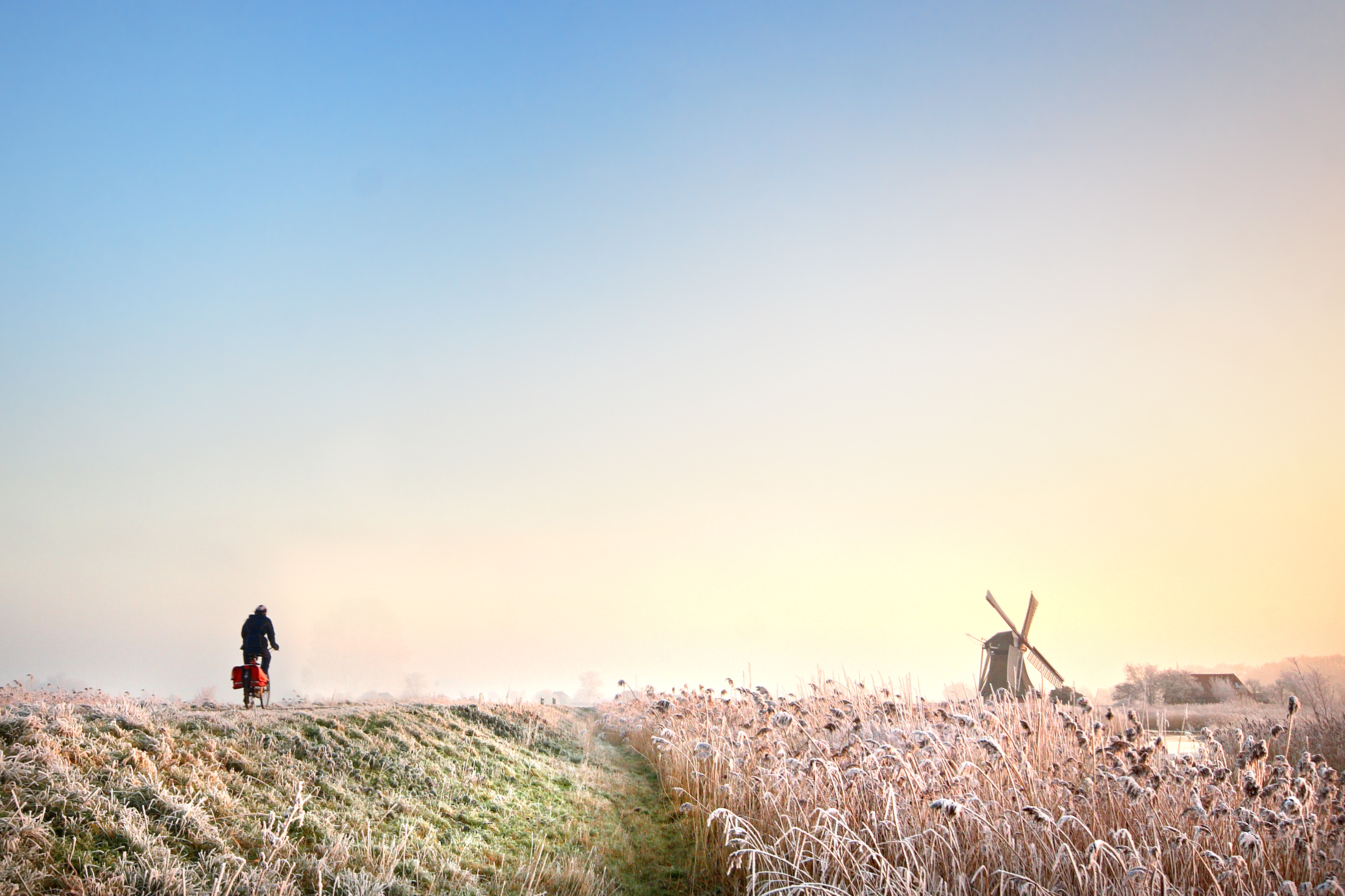 fietser op het platteland van Groningen