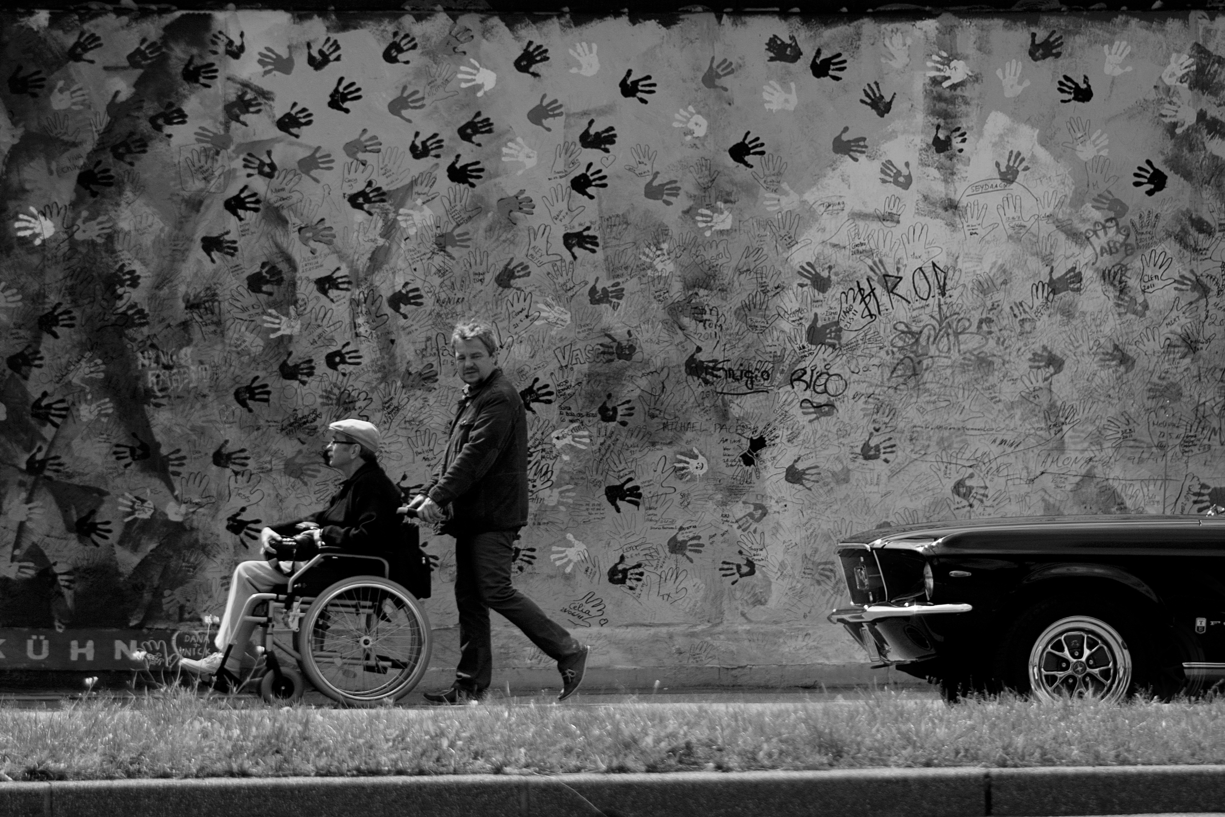 De muur, mustang en rolstoel..