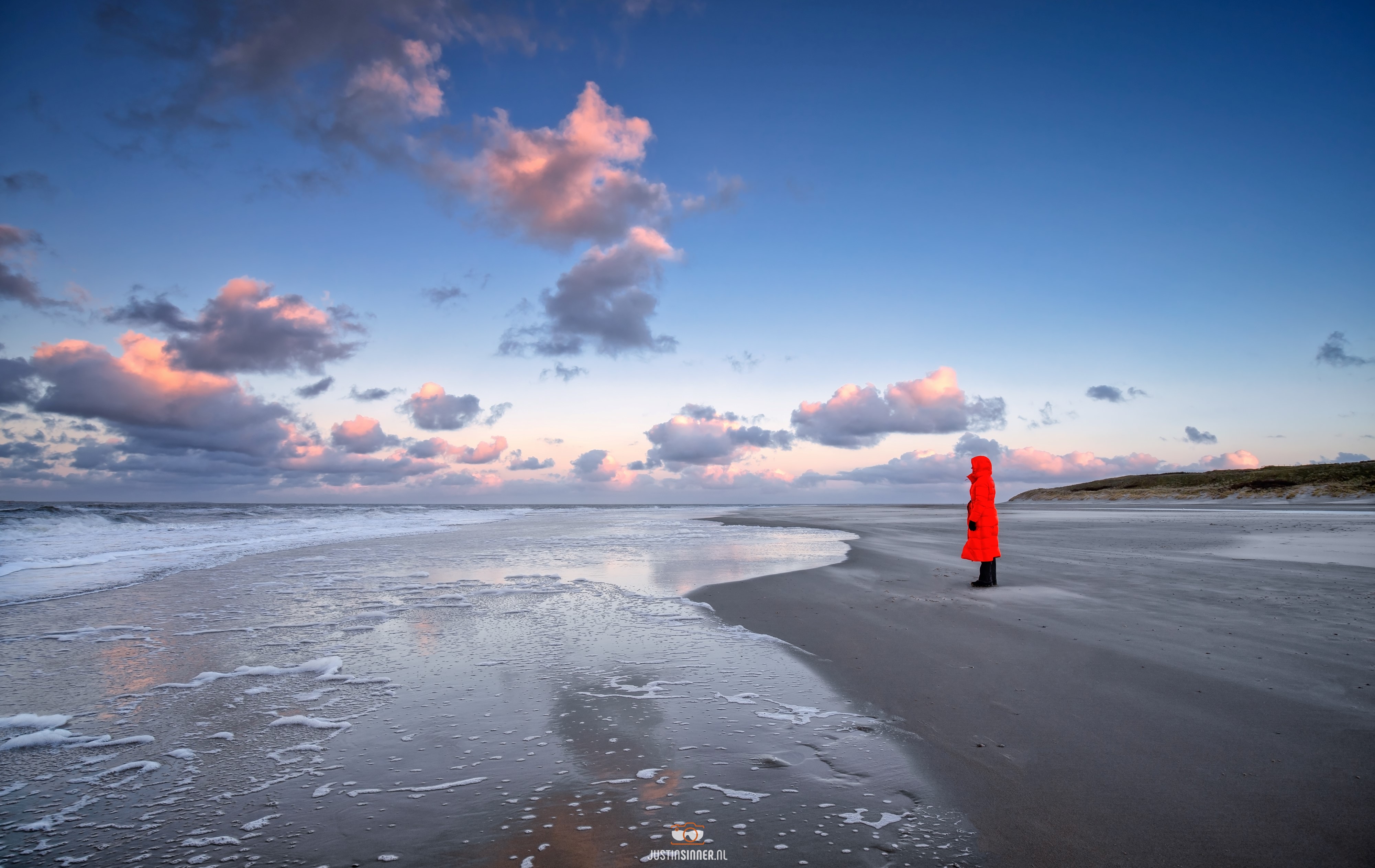 Eergisteren tijdens het fotograferen op het strand rondom de Texelse vuurtoren kwam ik een vrouw tegen in een knal oranje jas! Iets wat totaal afsteekt tegen de rest van de kleuren, en waar ik juist heel blij van wordt als fotograaf! Na een ja, kon ik wat plaatjes schieten. #Texel #fotografie #justinsinner #waddeneiland