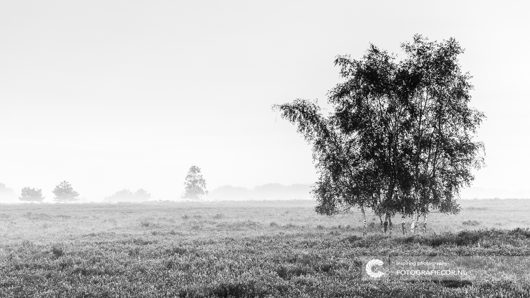 Verstild op de uitgestrekt en nevelige heide staat die fier eigenwijs te zijn met zijn grillige karakter.