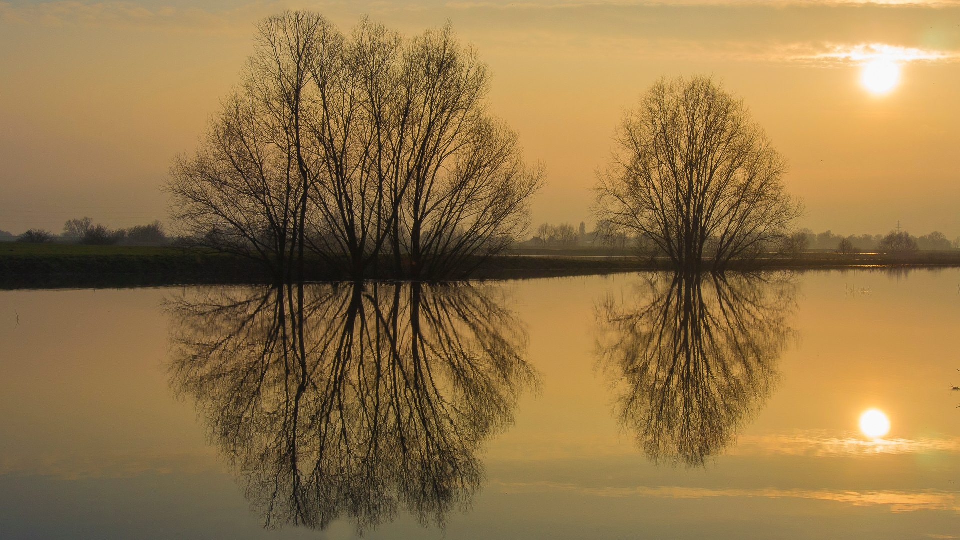 gemaakt met Nikon1 V1 en wel bij gemaal Kandia , ....normaal staan deze bomen hoog boven het talud van basalt blokken , nu dus met de pootjes in het water , wat een prachtige spiegeling geeft