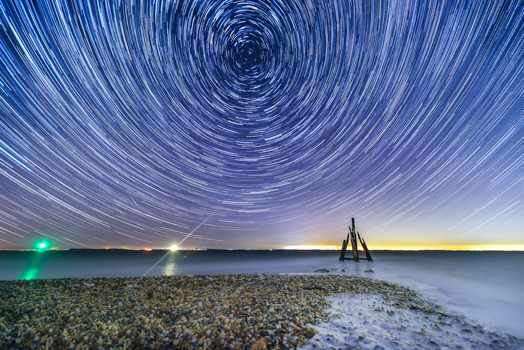 Deze foto was ik al maanden van plan om te maken, maar iedere keer waren of de omstandigheden niet goed of ik had geen tijd. Eindelijk kwam alles samen afgelopen weekend. Deze foto is samengesteld uit 126 foto's, die ieder een sluitertijd hadden van 30 seconden. De camera heeft dus 1 uur lang foto's staan maken. Die heb achteraf op elkaar gelegd waardoor je dus dit beeld krijgt. De sterren lijken te verplaatsen door het draaien van de aarde. Het middelpunt van de cirkel is het noorden. Er staan zelfs 2 "vallende sterren" op, kun je ze vinden?