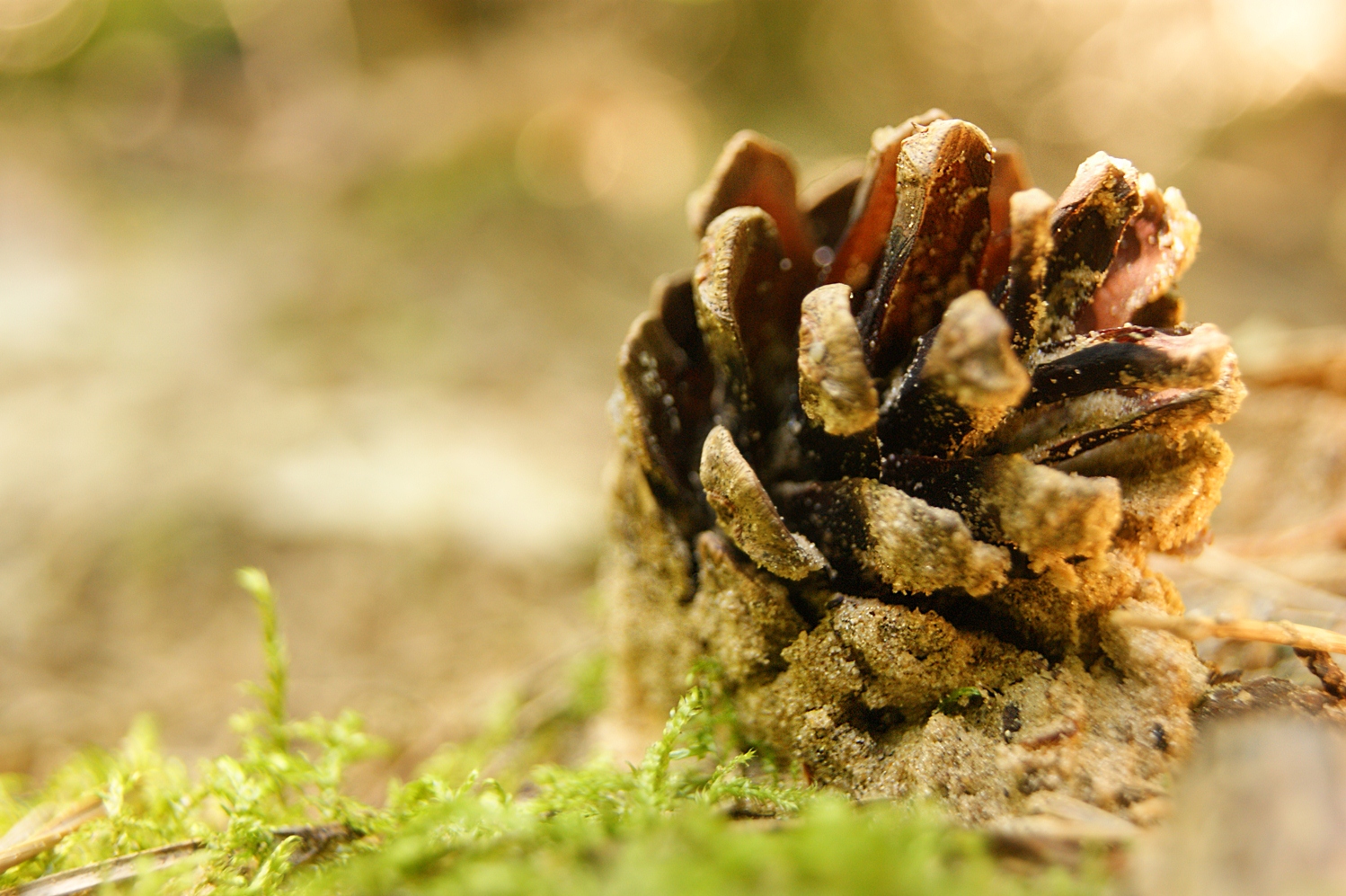 Het licht scheen mooi op de dennenappel en de kleuren in de foto zijn typisch voor het creëren van een echte herfst sfeer.
