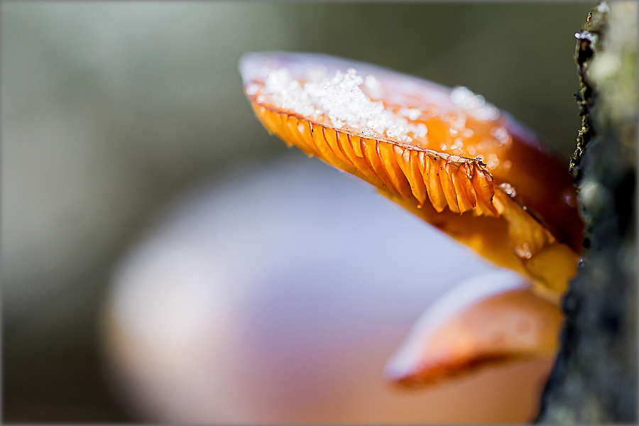 Dennenvlamhoed met sneeuwvlokjes