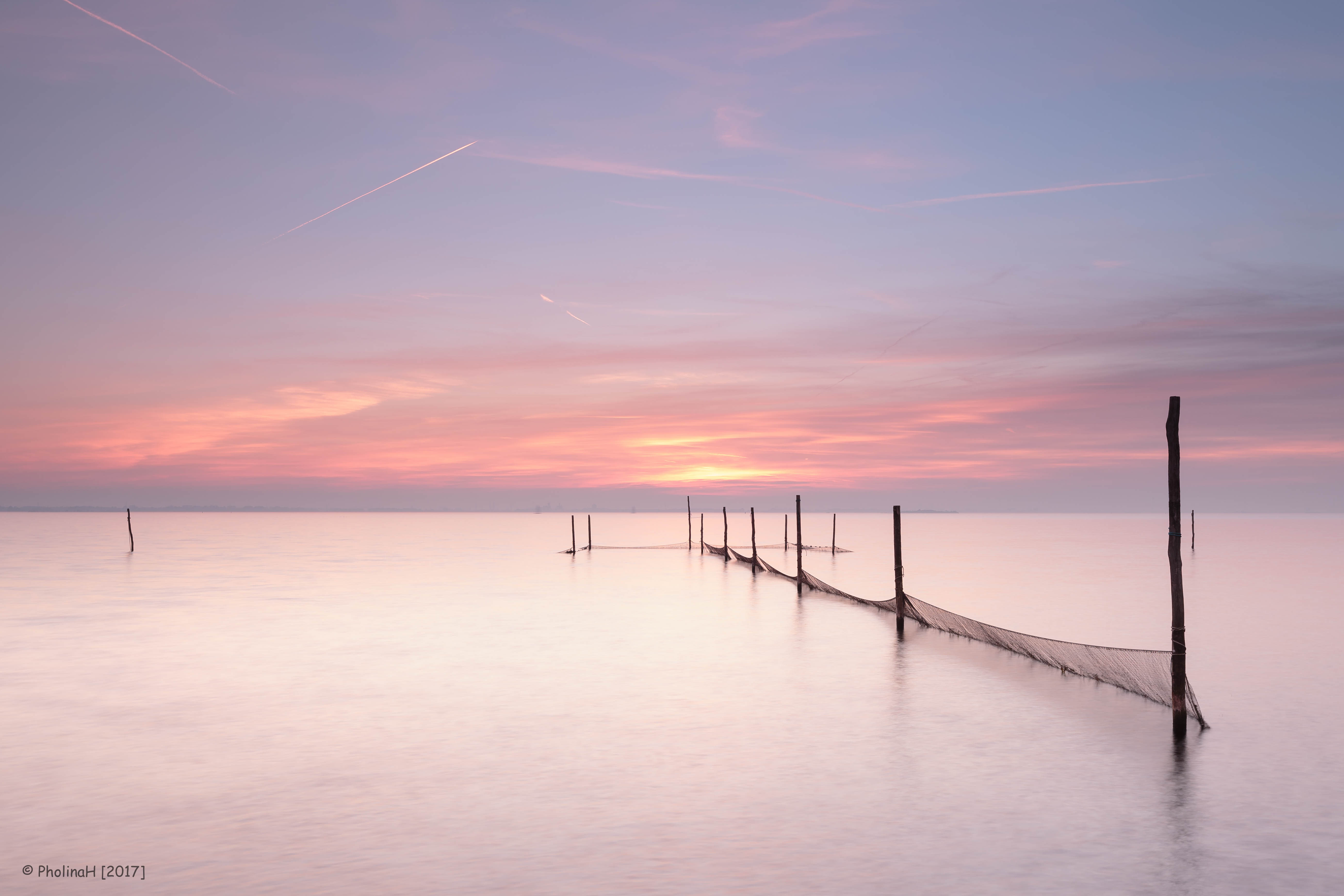 Serene zonsondergang bij het IJmeer, aan de overkant ligt Amsterdam
