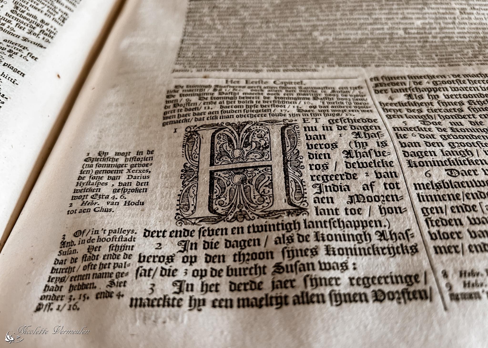 Op de boekenmarkt in Dordrecht was een antieke bijbel uit 1702 te zien.