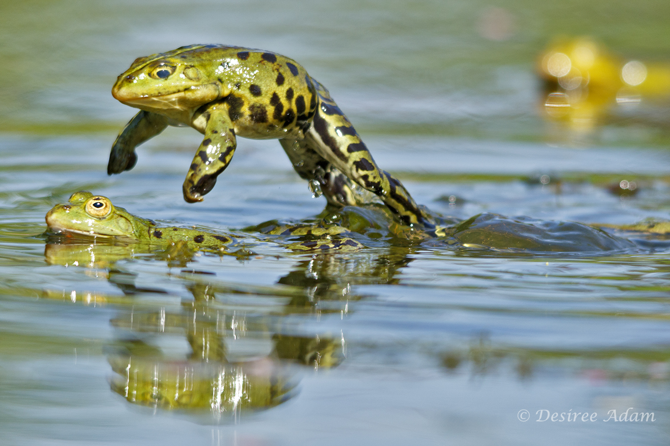 Groene kikkers, springen, kwaken en genieten zodra de zon schijnt...
