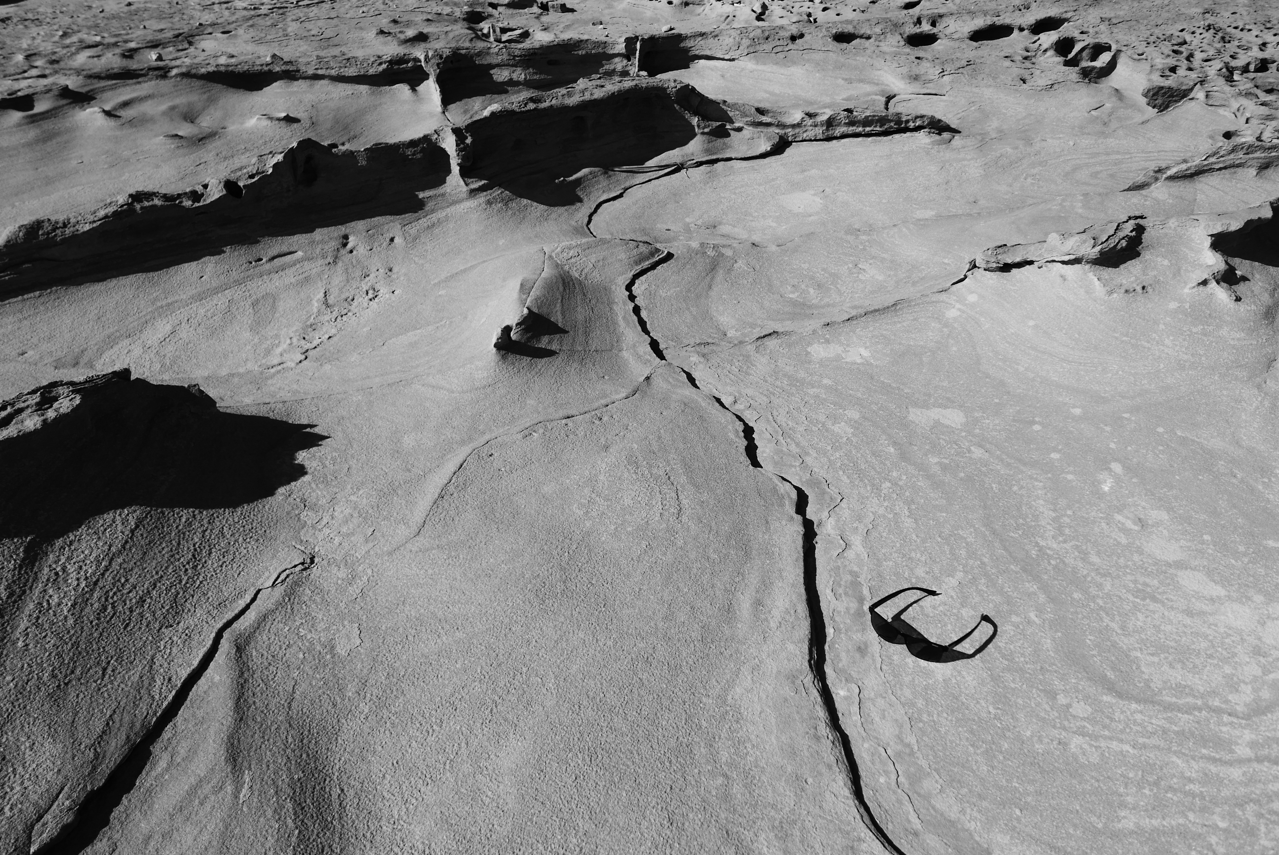 Zoals deze foto, het lijkt een luchtfoto van een landschap zoals de Grand Canyon, maar als je de zonnebril ziet, begrijp je de schaal en het perspectief van de foto.