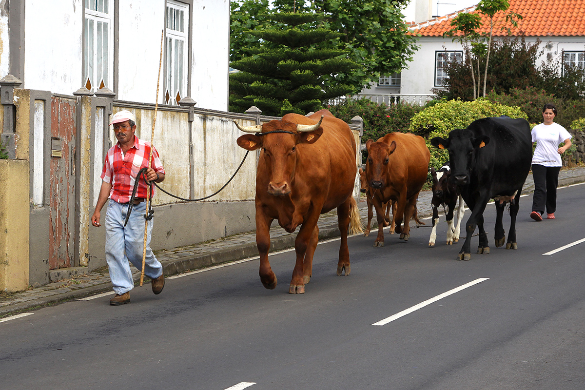 Door de dorpsstraat naar de wei