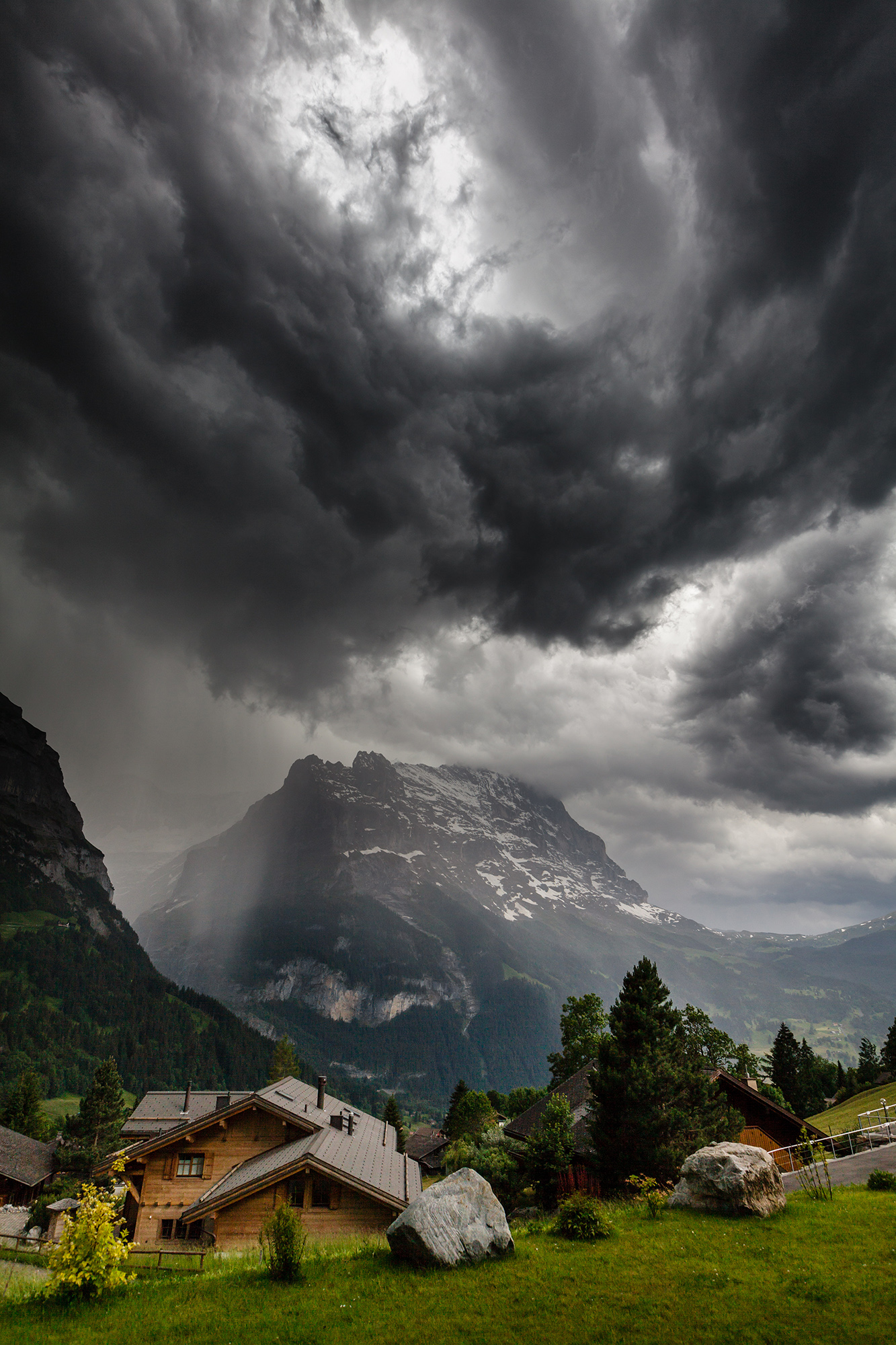 Dreigende wolken boven Grindelwald in Zwitserland