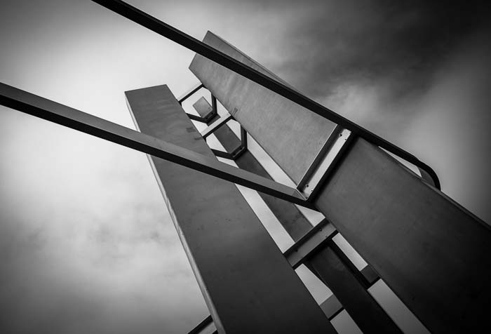 Mijzelf de opdracht opgelegd om van deze kale palen wat moois te maken. wel gewacht op bewolkte luchten voor de achtergrond. Verrassend hoeveel je uit drie stroken beton en h balken kunt halen.