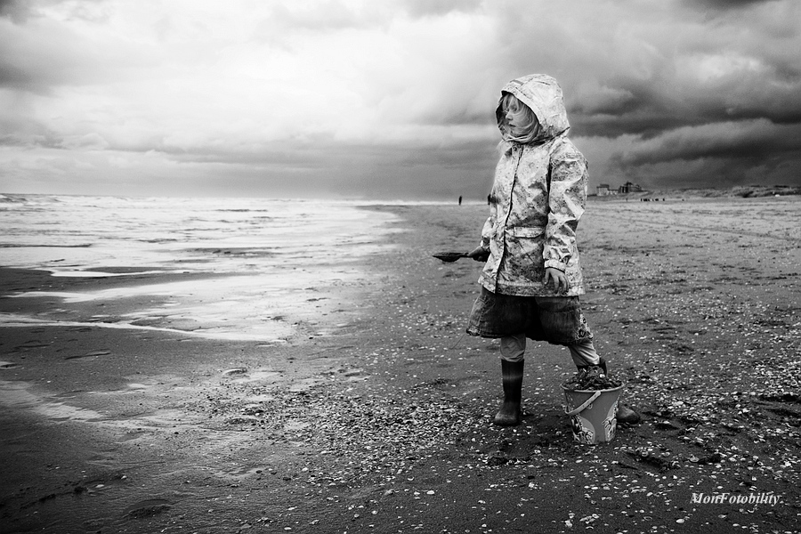 Het meisje kijkt zo mooi ingespannen dromerig naar het water