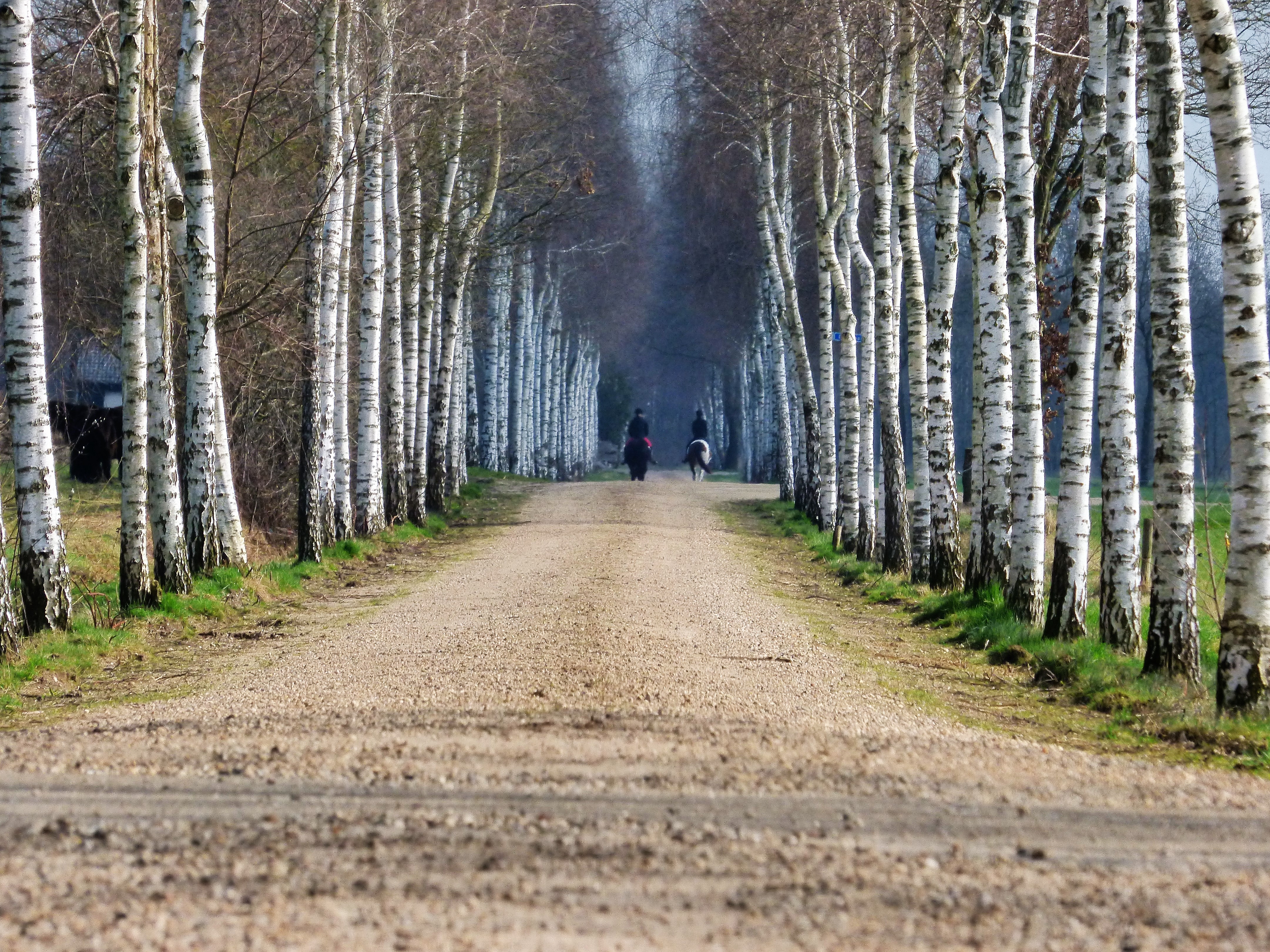 Een eindeloze rij berken met in de verte ook nog twee paarden die zorgen voor de symmetrie , vandaar dubbele herhaling.