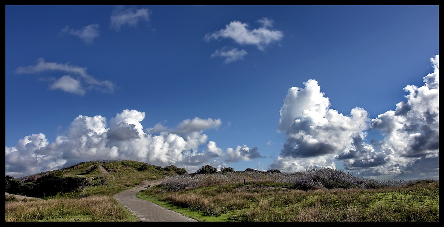 Stuk duingebied tussen Scheveningen en Kijkduin in herfsttooi met een fraai wolkendek.