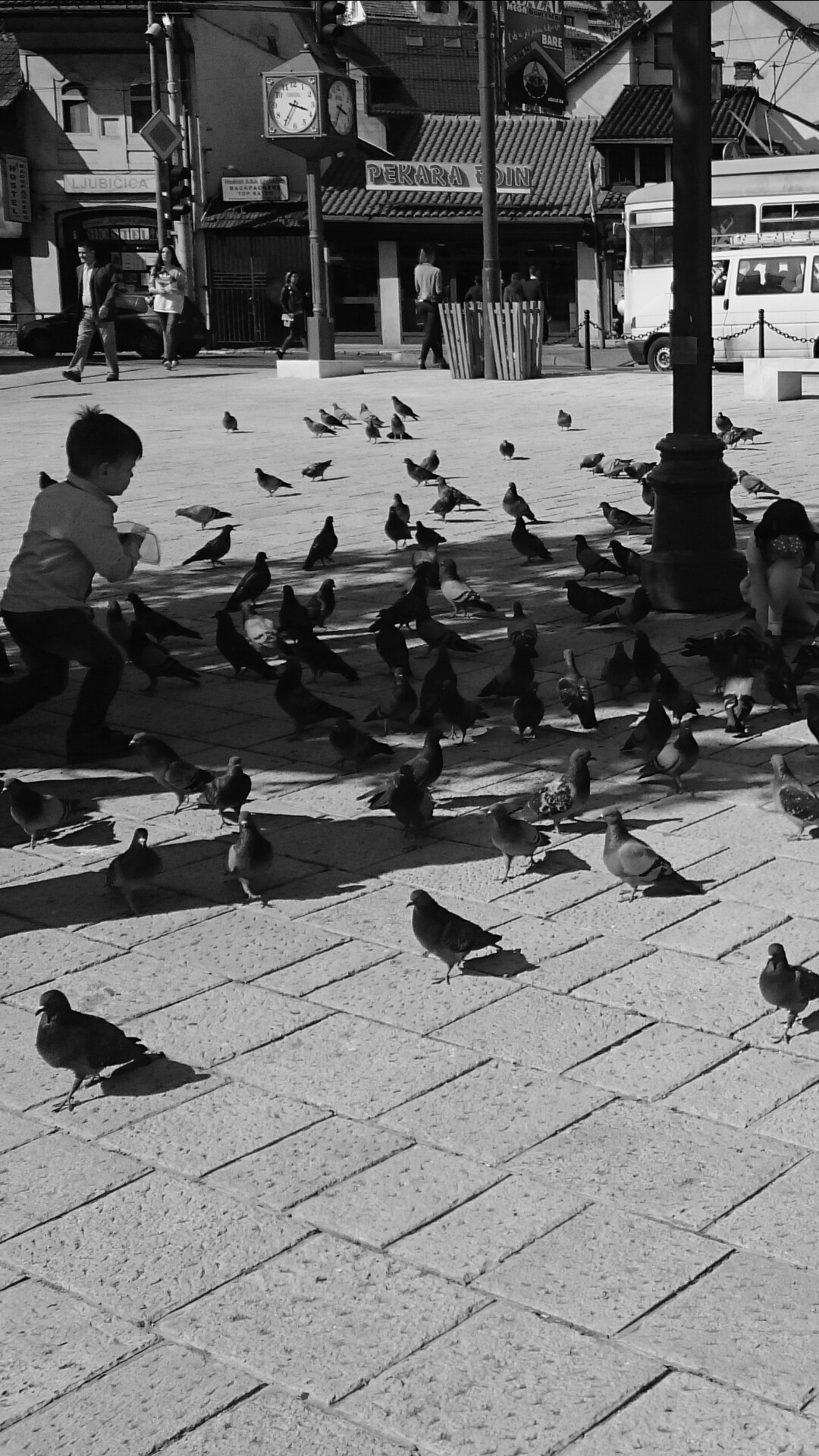 Niks mooiers dan twee jonge kinderen die zo genieten van het eten geven aan de duifjes! De tijd, de klok, staat letterlijk stil door er een foto van te maken..