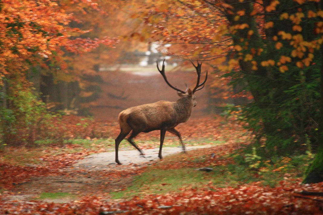 edelhert in herfstbos