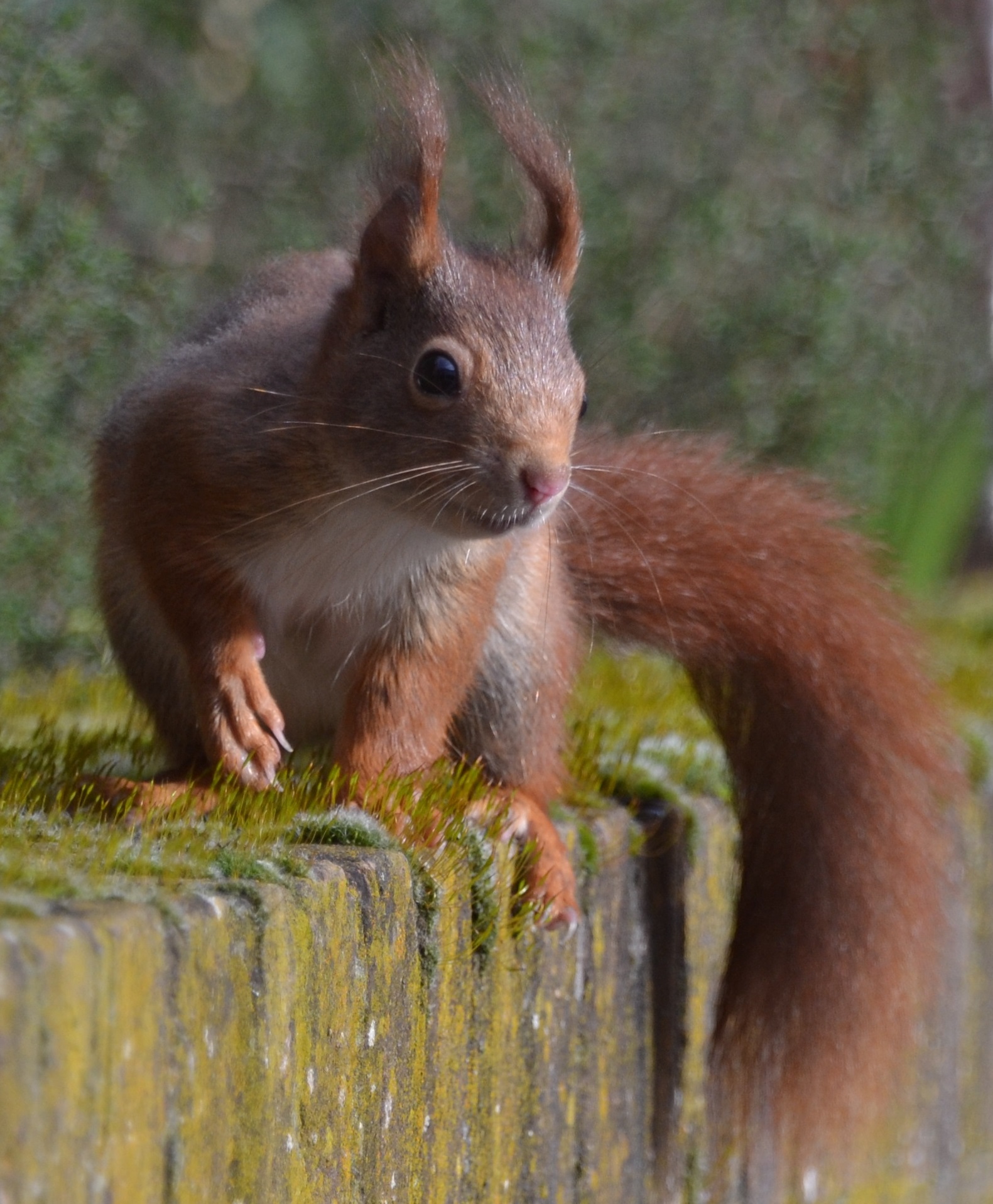 eekhoorn Modest op bezoek op het terras
