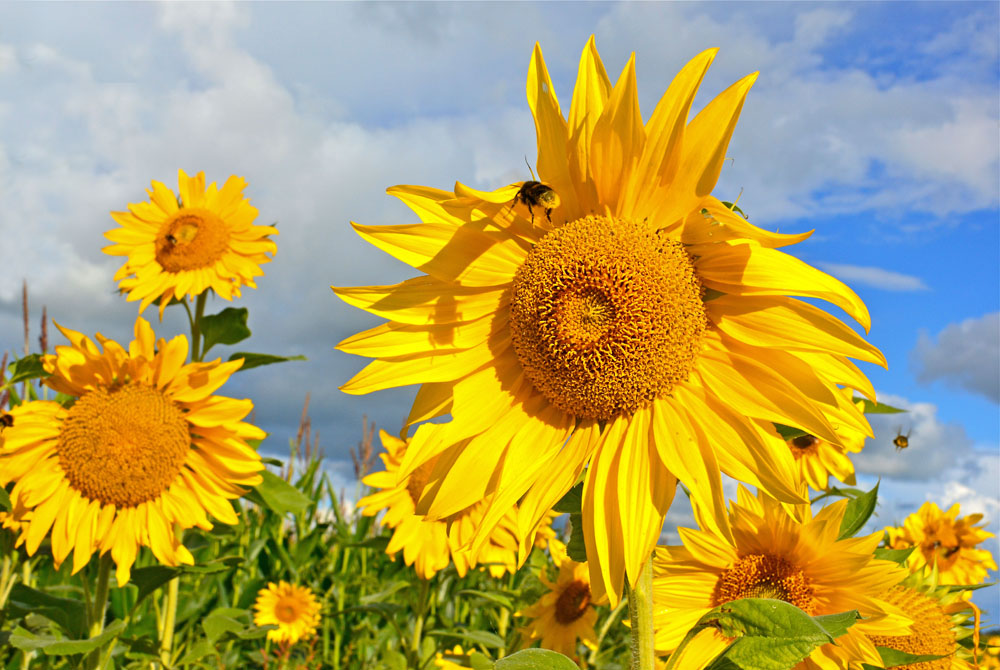Een veld vol zonnebloemen in Friesland