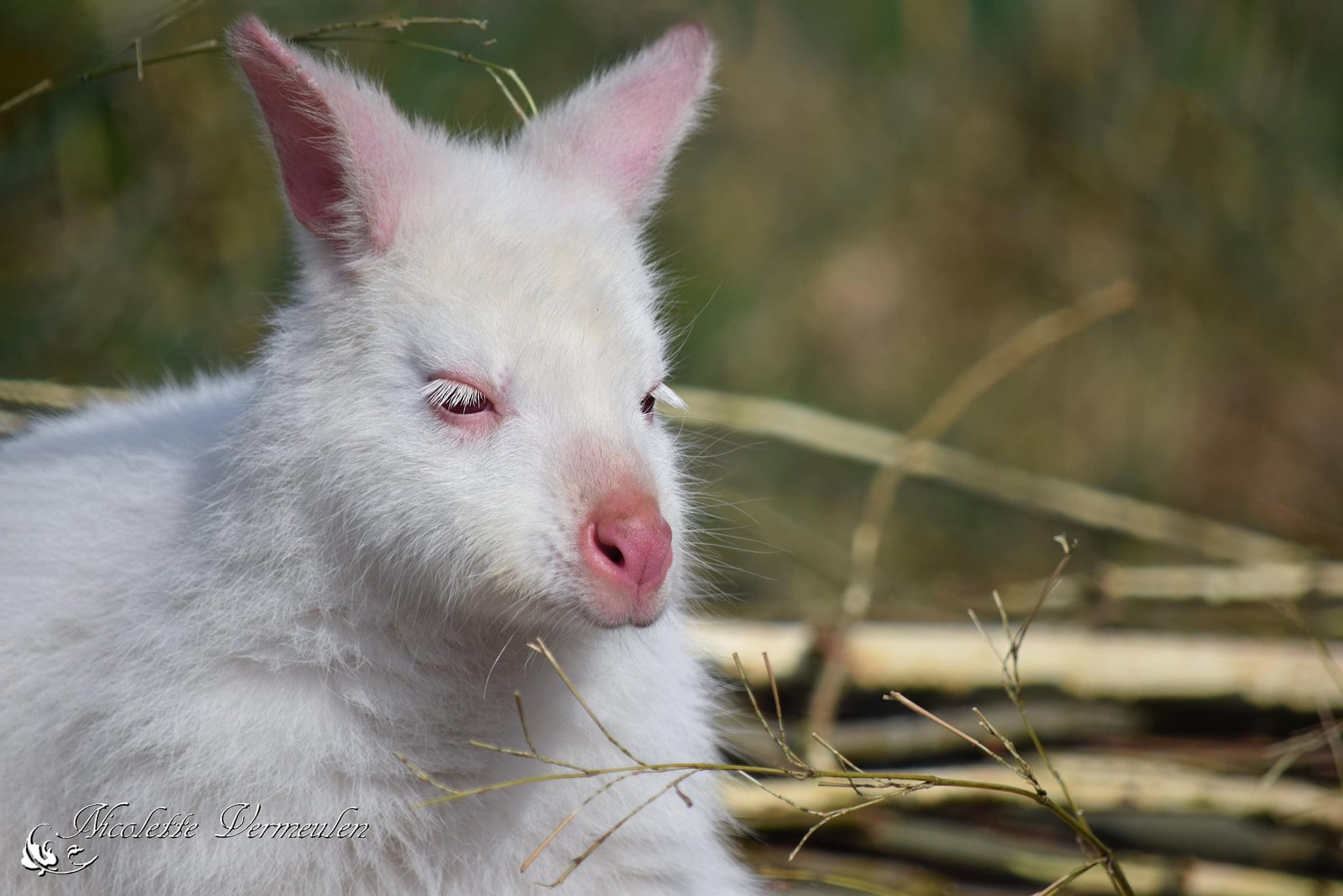 Een albino dier met een mooie witte vacht bij Uilenpark De Paay.