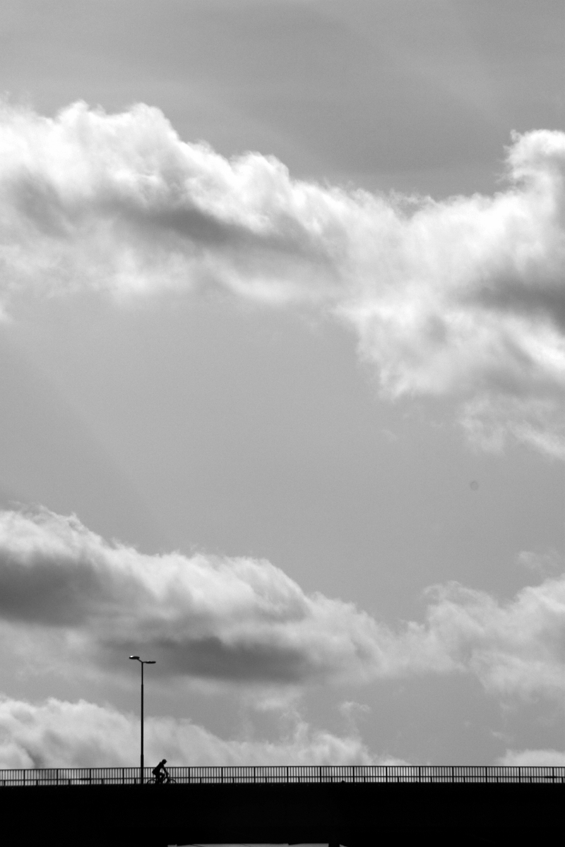 Eenzame fietser op een brug