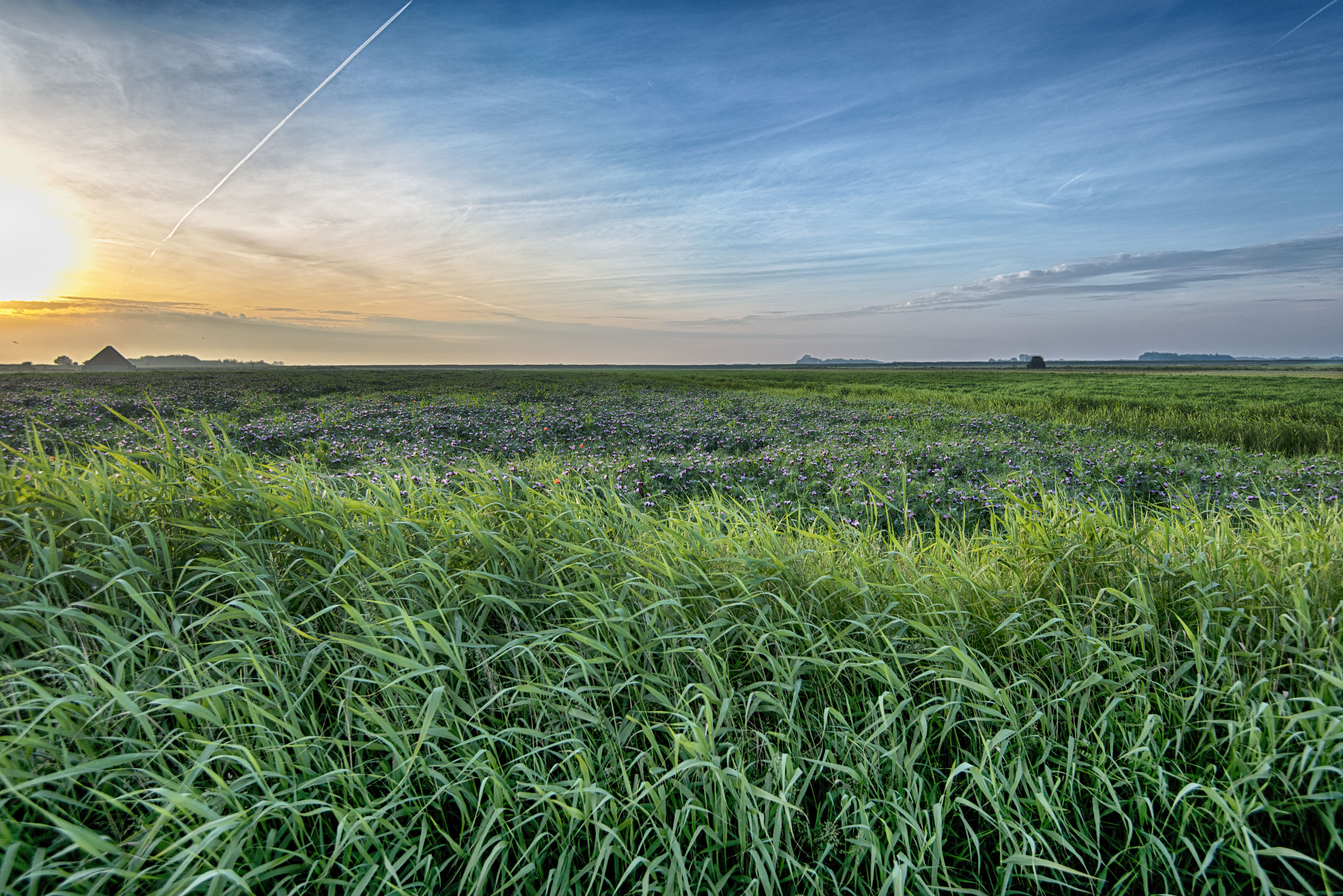 Raw converter witbalans en lens correctie en plaatselijk bloemenveld lichter maken. Voorvervscherpen.