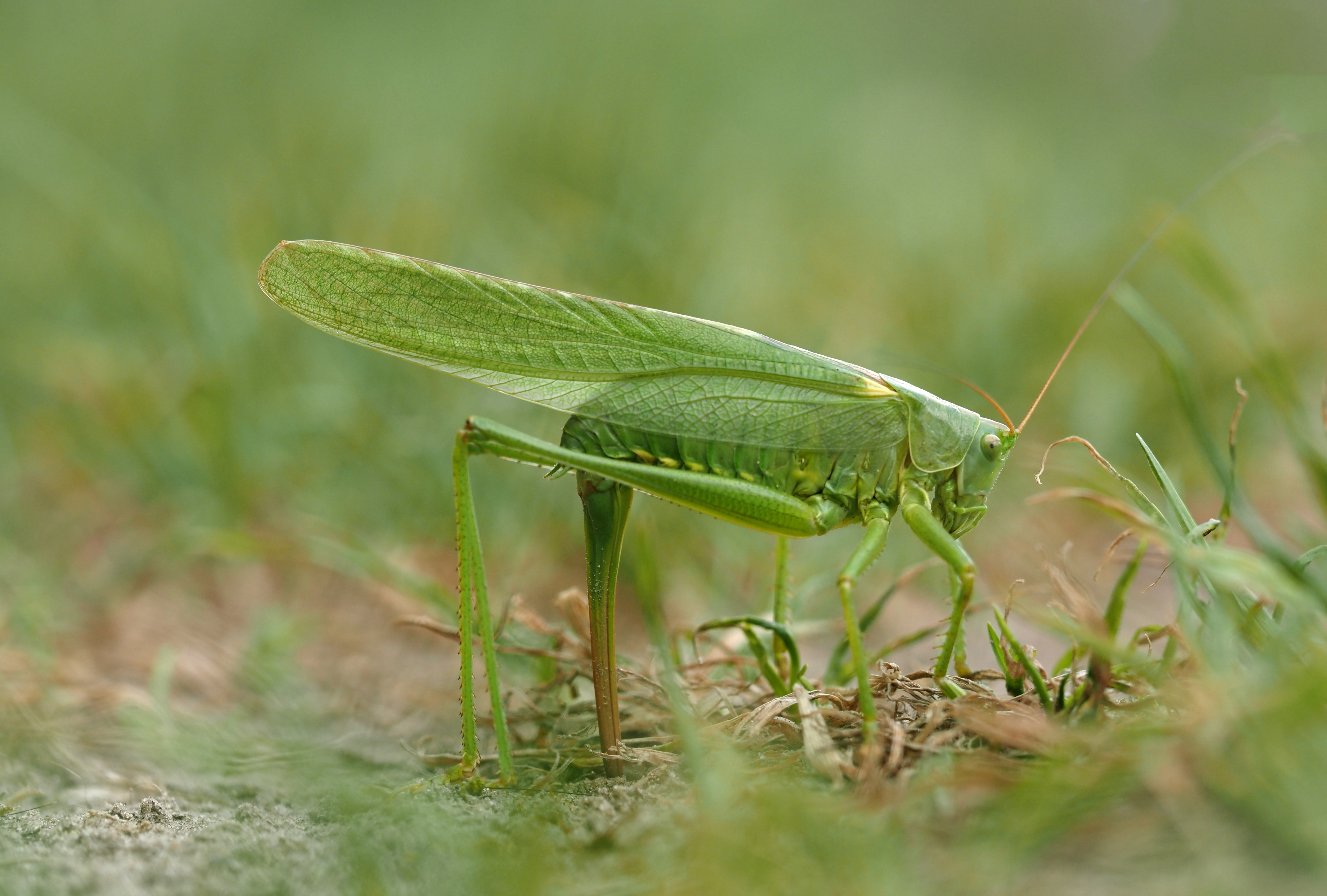 Beksprinkhaan legt hier eitjes in de grond