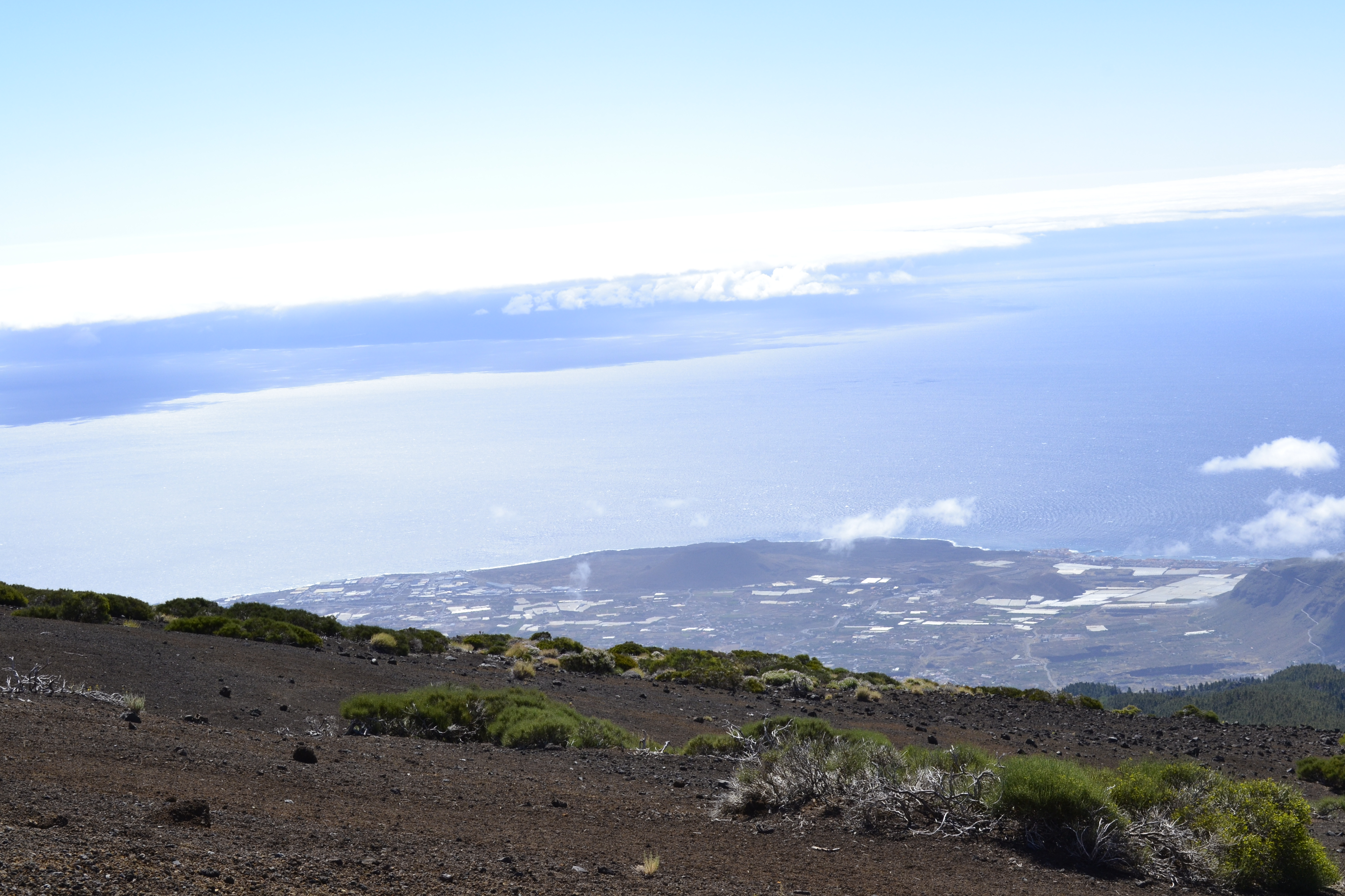 Foto genomen op 2200 meter hoogte. wolken en zee lopen in elkaar over. uitzicht schitterend.