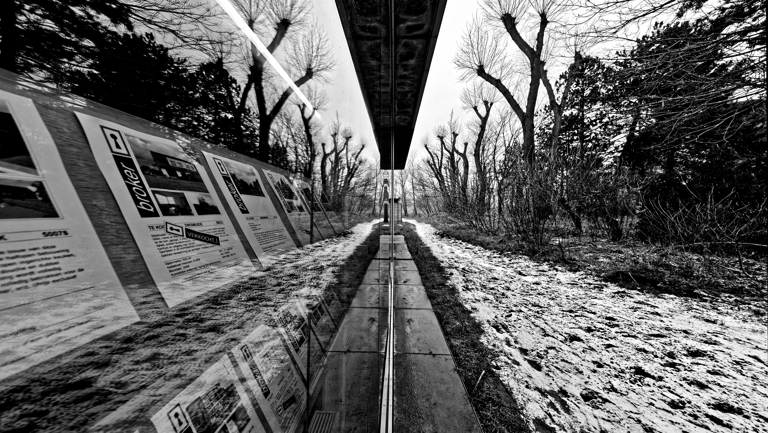 Etalage en bos in sneeuw
