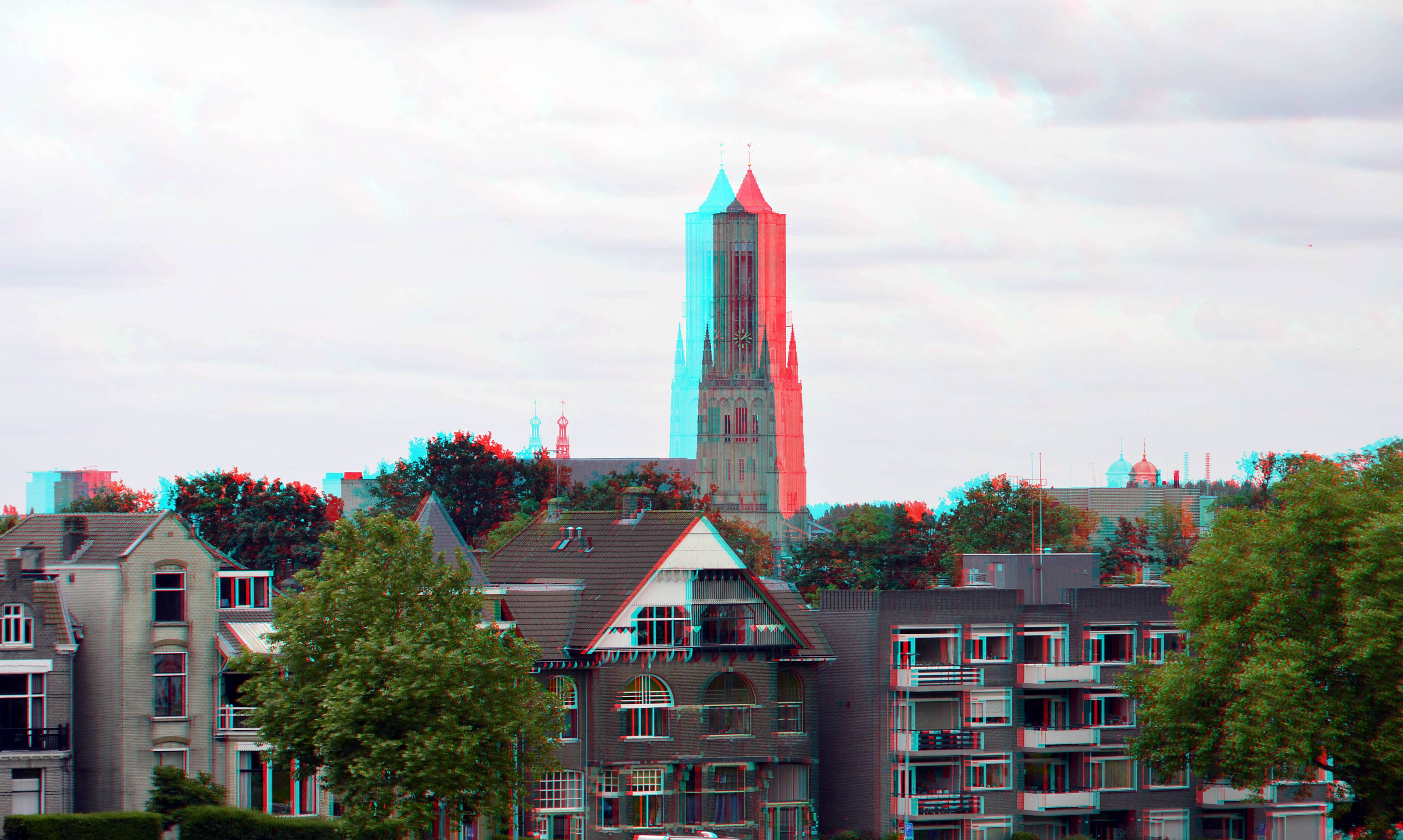 Eusebiuskerk Arnhem vanuit Sonsbeekpark 3D hyper.anaglyph Nikon D7000 cha-cha