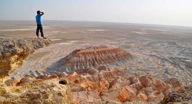 De Yangykala canyon is een onherbergzaam gebied midden in de woestijn in Turkmenistan. Er heerst een extreem klimaat: erg heet overdag in de zomer en het kan er enorm waaien. Je kunt hier in je eentje kamperen in dit overweldigende landschap.
