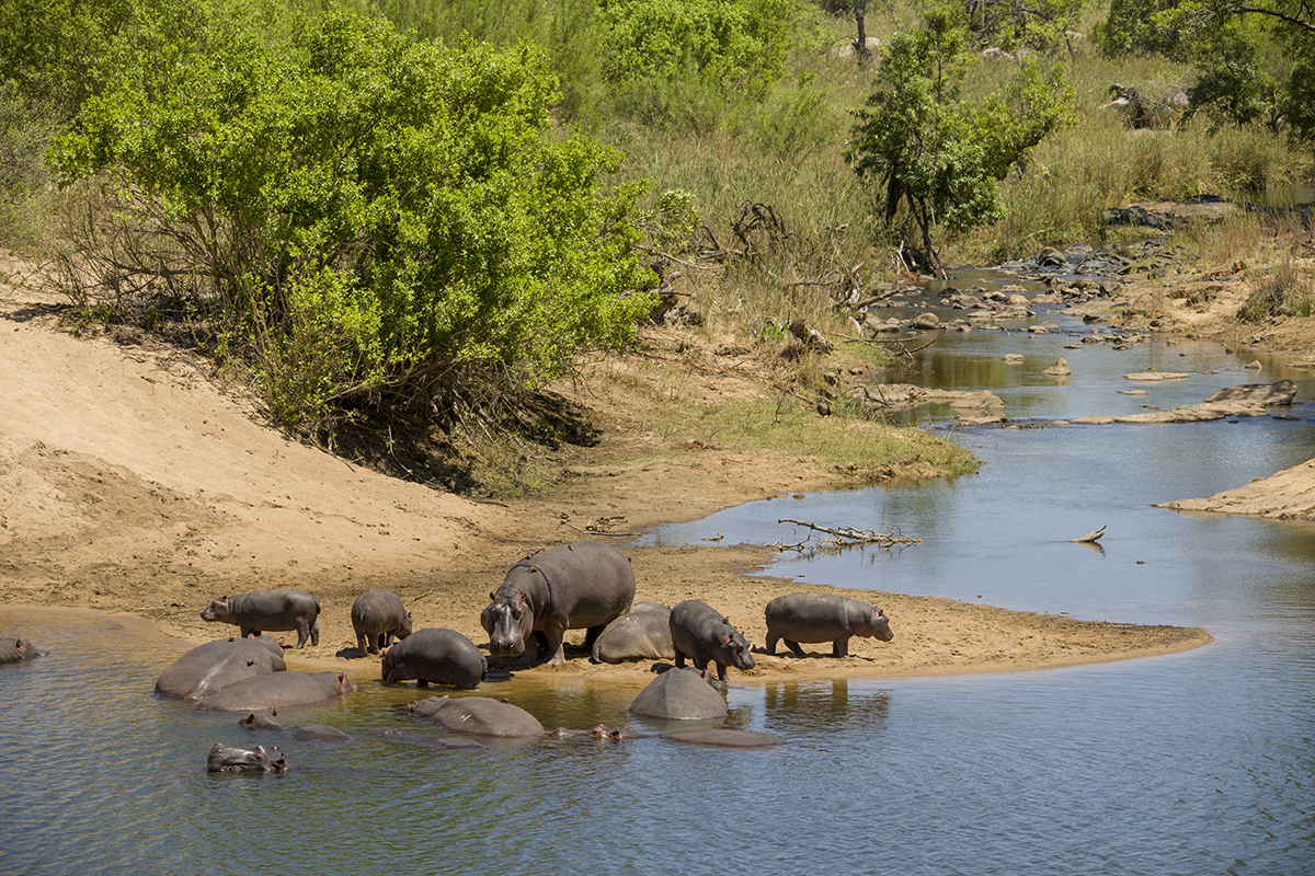 fam. nijlpaard aan het badderen