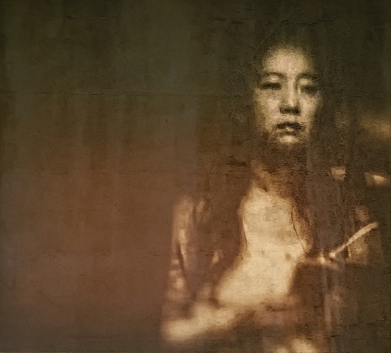 een toeristen meisje kijkt uit het raam van Museum van Loon te Amsterdam