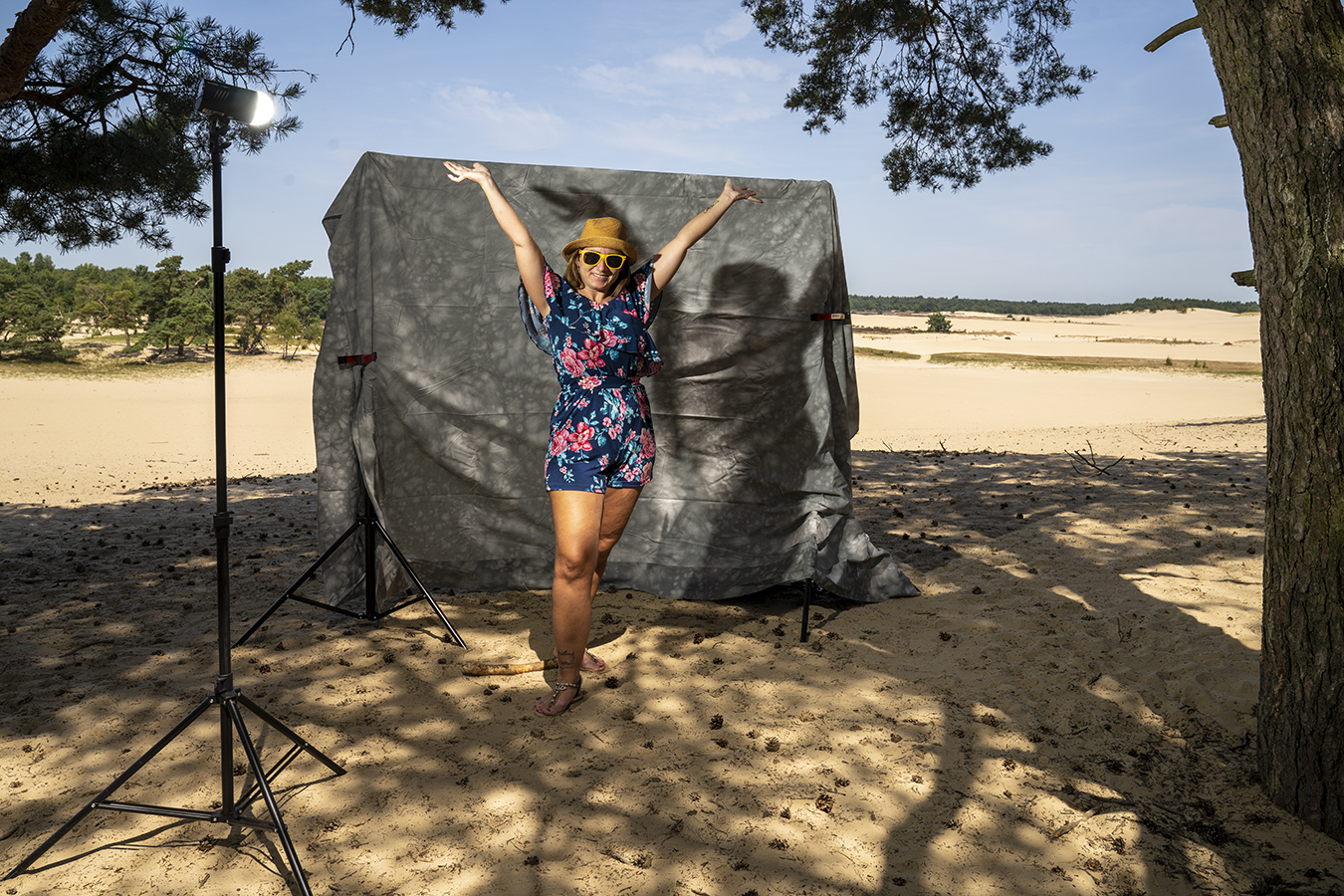 Jonge vrouw poseert in zomerkledij in een natuurgebied