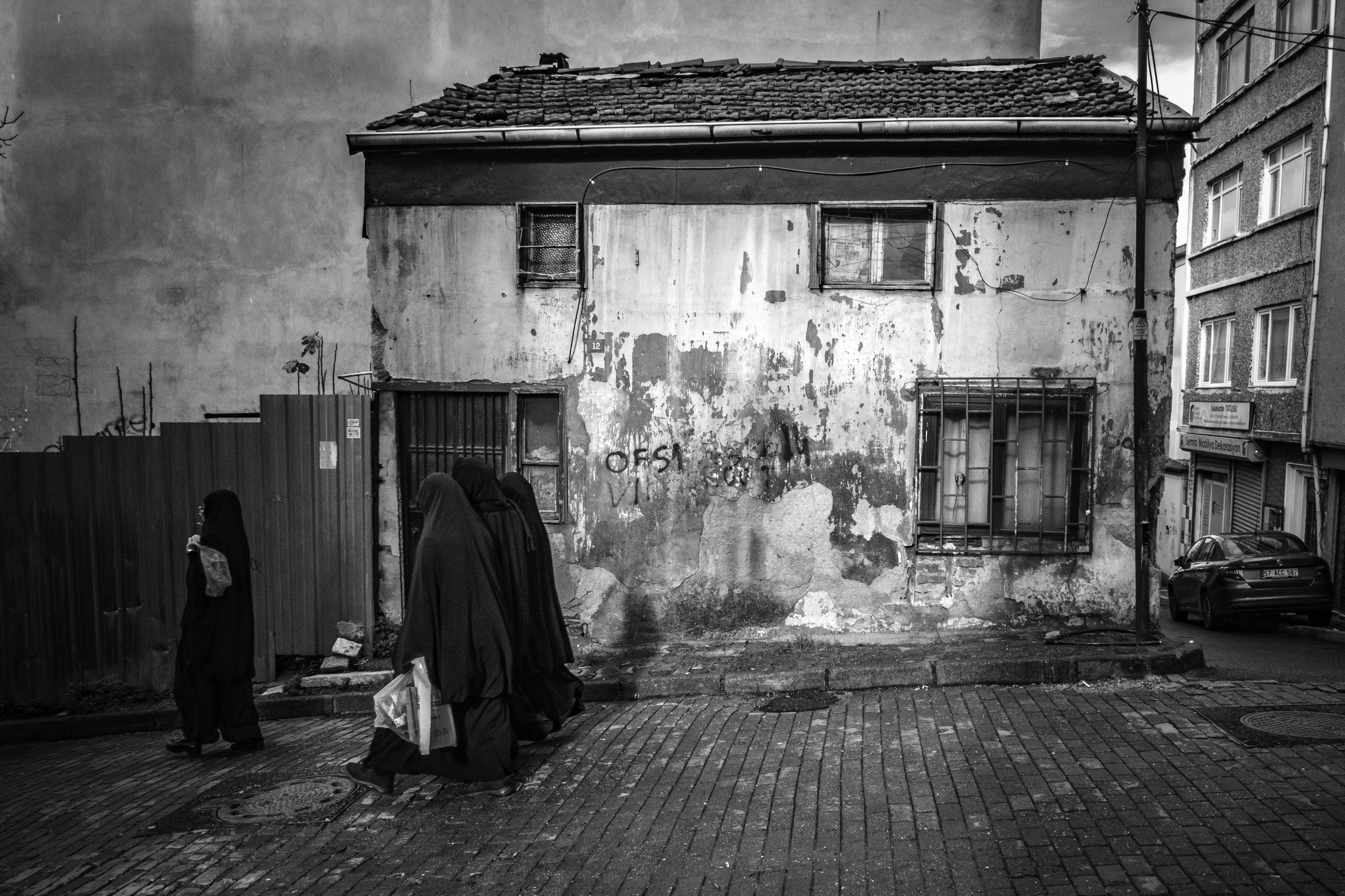 Mooi beeld van gesluierde vrouwen in de wijk Fatih, Istanbul