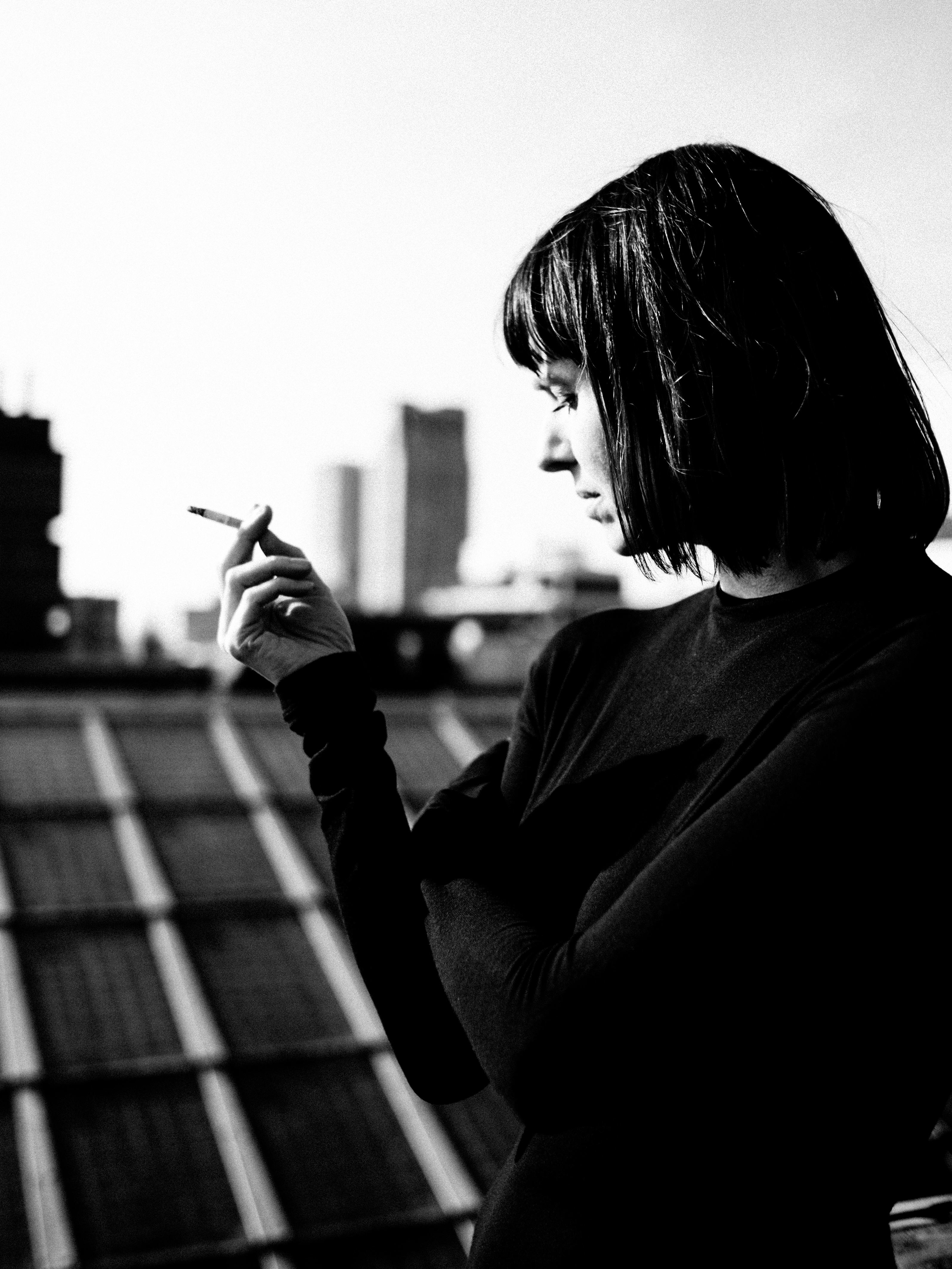 Femme fatale on rooftop
