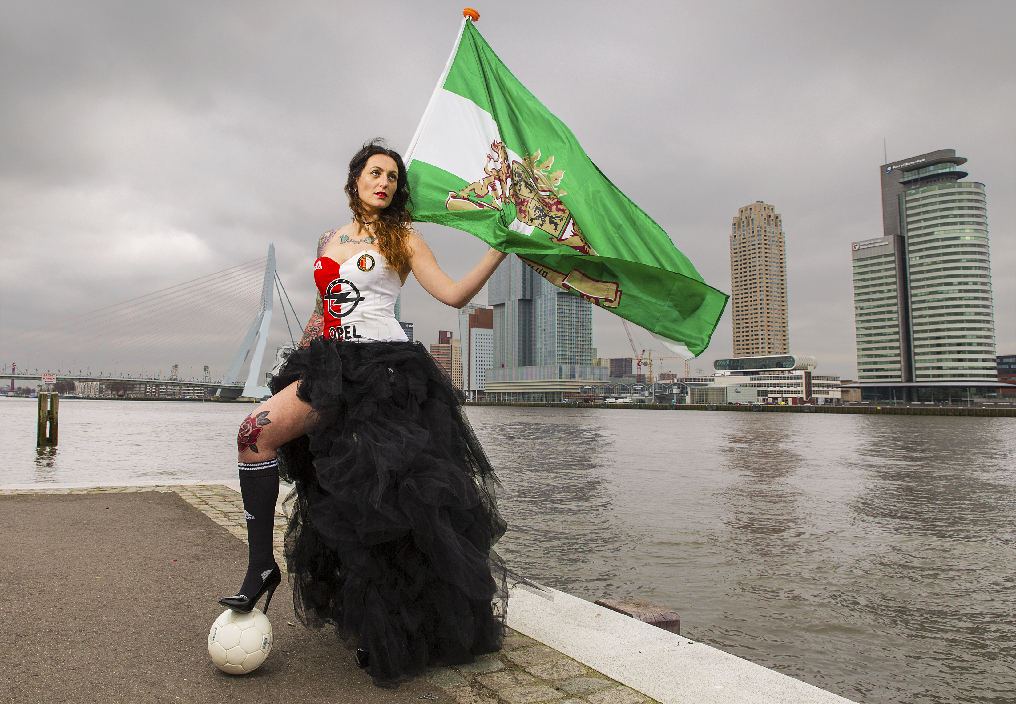Feyenoord supporter geeft skyline kleur