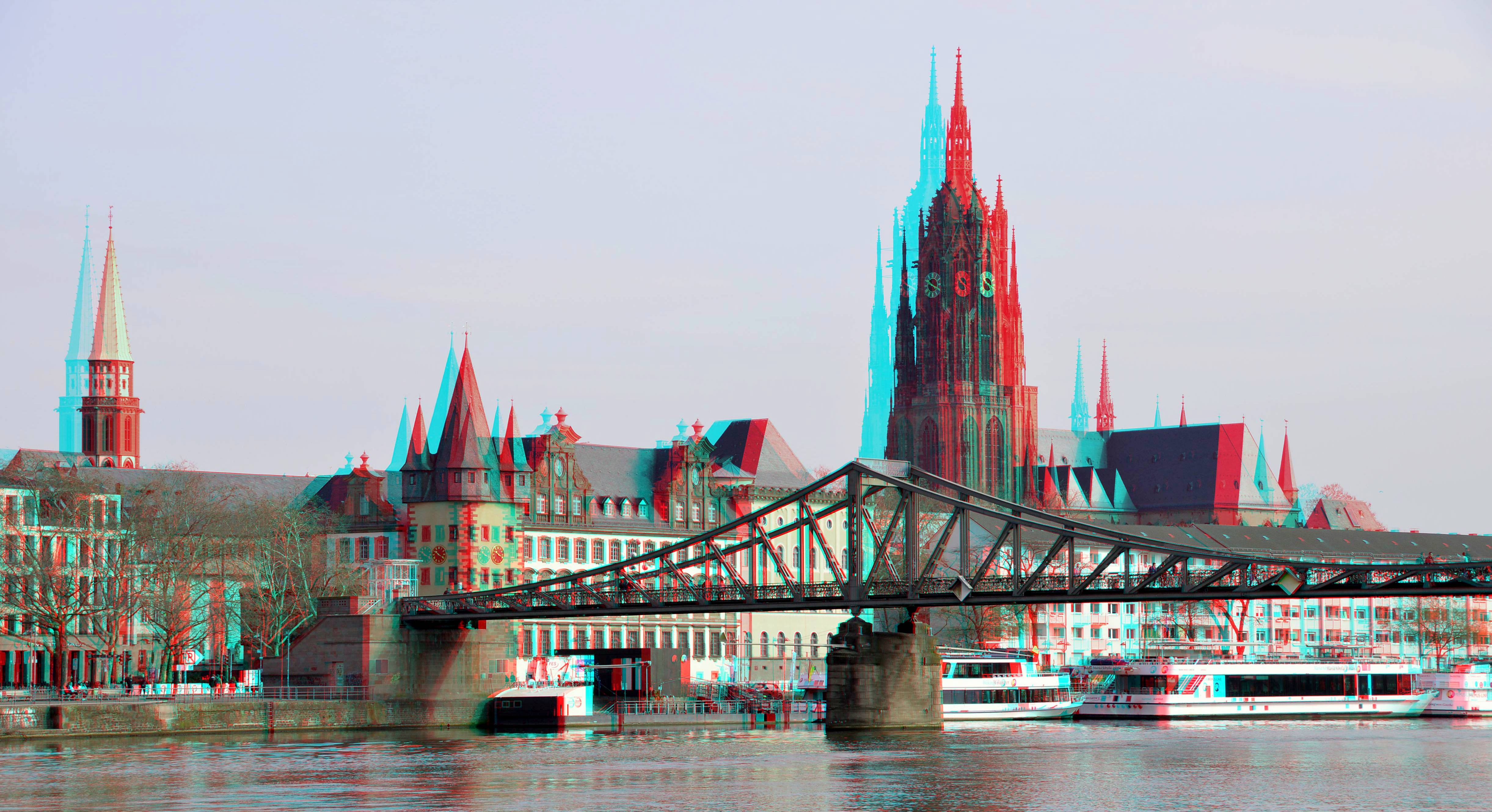 Frankfurt Am Main 3D Eiserner-Steg bridge anaglyph