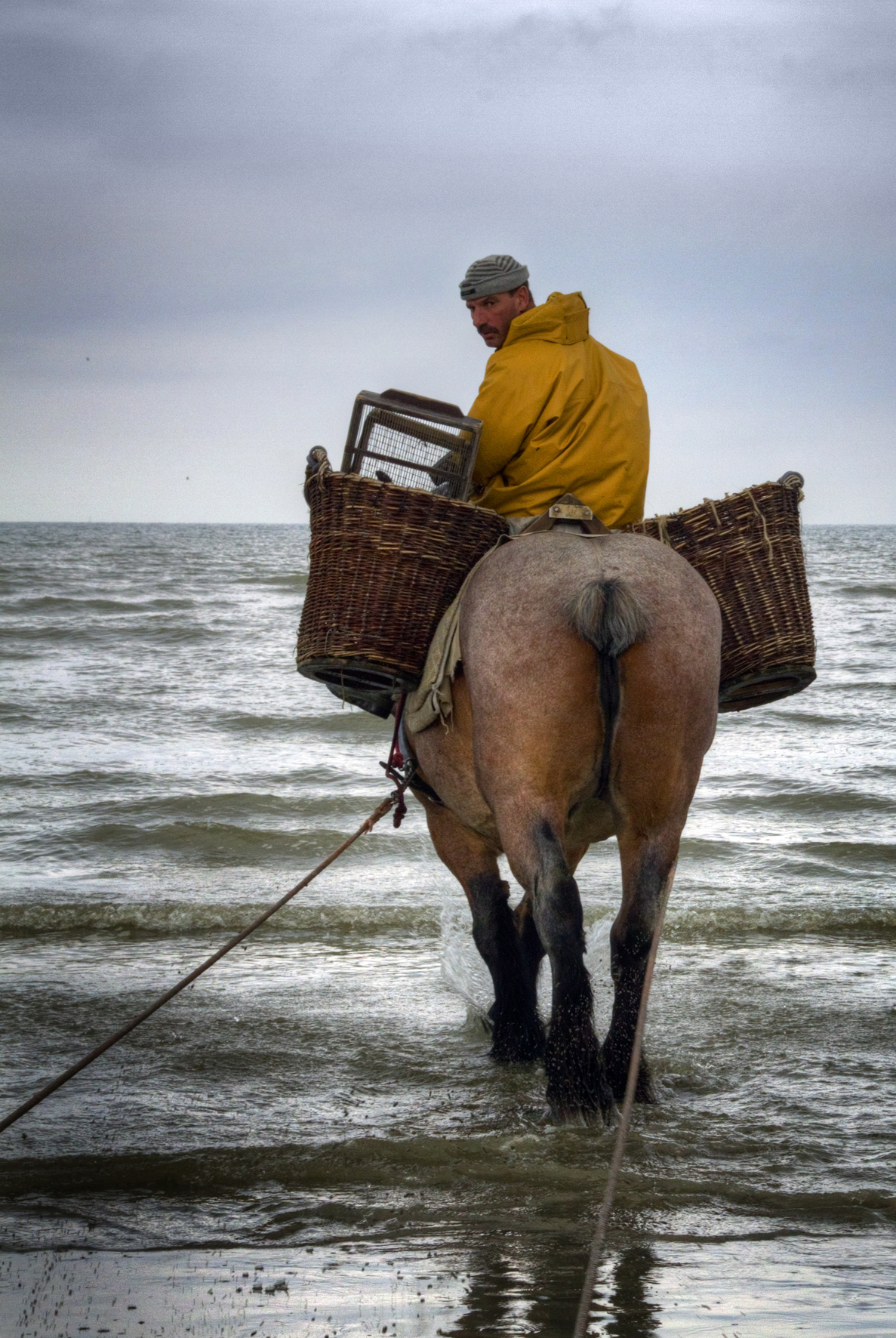 Garnalenvisser in de zee