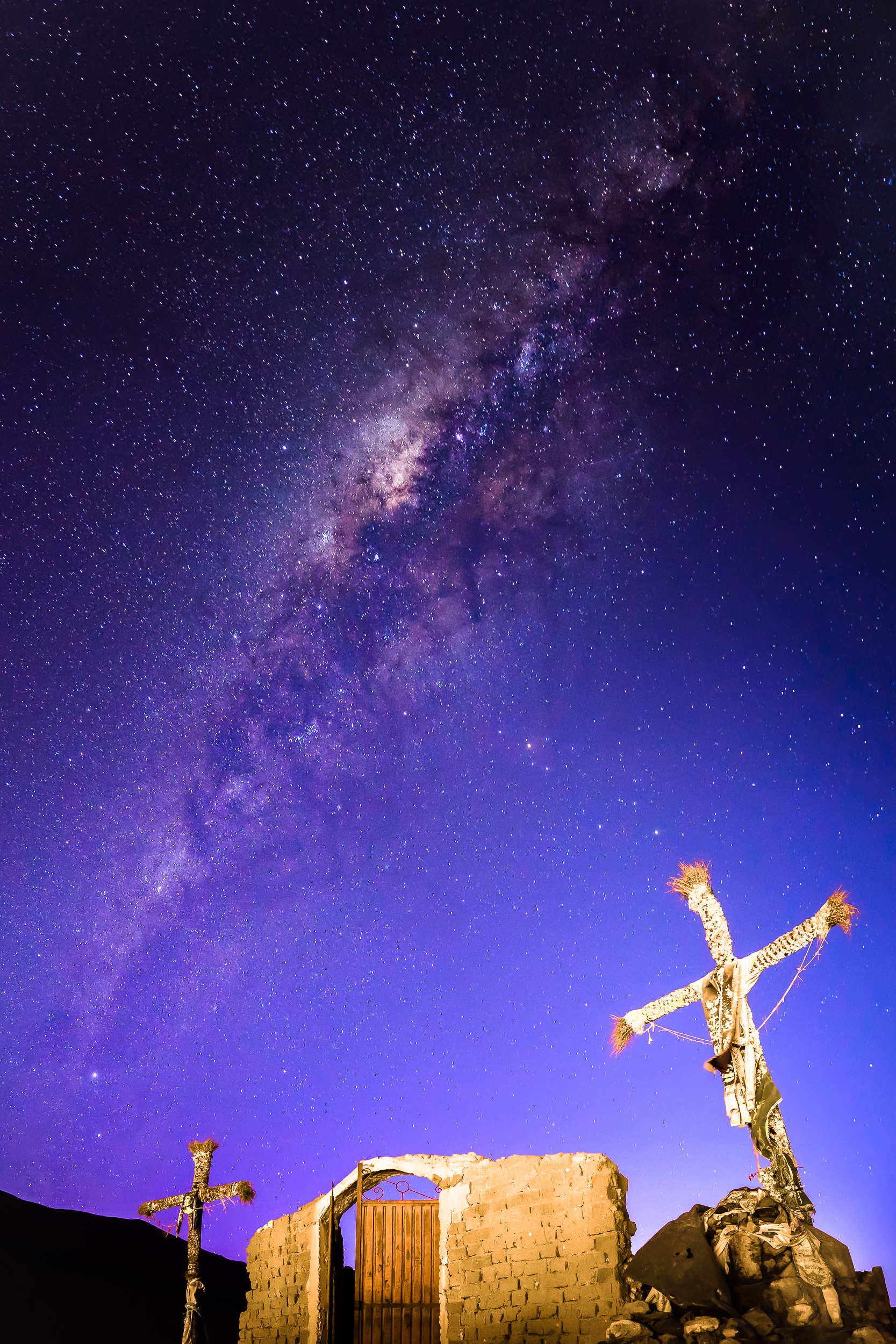 Het stond al een tijd op mijn lijstje om 's nachts de melkweg te fotograferen. Helaas zijn de condities in Nederland verre van ideaal met alle lichtvervuiling die optreed. Gelukkig was dit niet het geval in Peru, waarbij je midden in het gebergte nauwelijks kan spreken van lichtvervuiling. Tot mijn geluk vond ik na een tijdje lopen ook nog een een super mooi religieus plekje wat perfect was om te gebruiken als voorgrond.