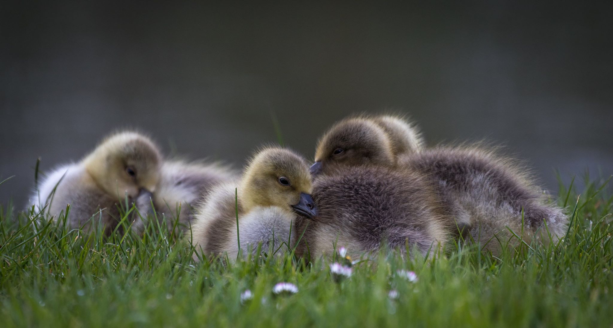 Jonge gansen gefotografeerd aan de vijvers van Kasteel De Cannenburgh.